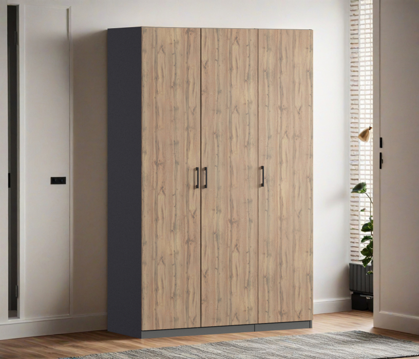 Шкаф трехдверный Макс 1500 мм, вариант №4 (ЛДСП) (Дуб вотан/Диамант серый)