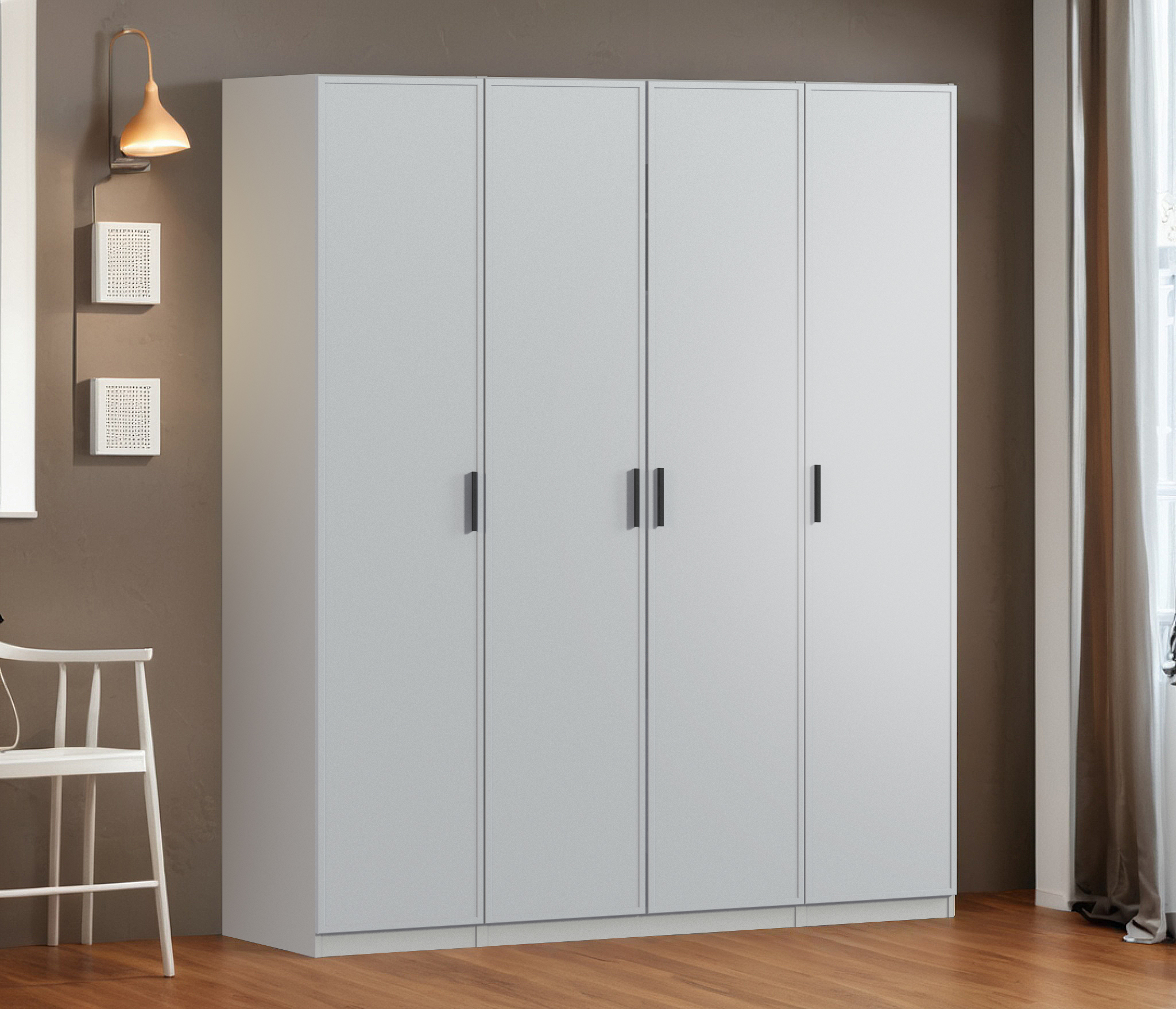 Шкаф четырехдверный Макс 2000 мм, вариант №2 (ЛДСП/МДФ) (Серый)