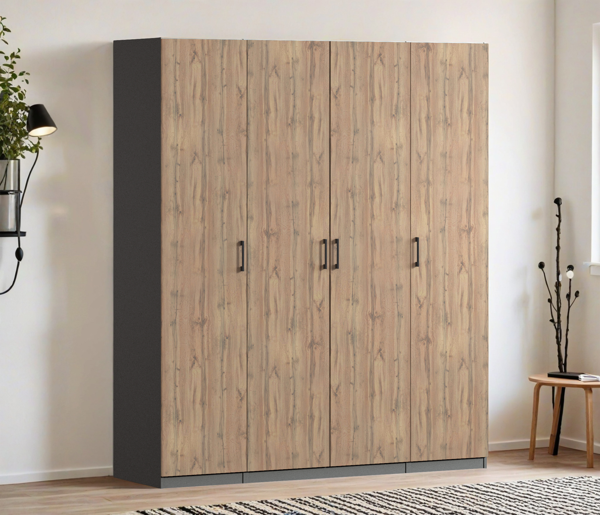 Шкаф четырехдверный Макс 2000 мм, вариант №2 (ЛДСП) (Дуб вотан/Диамант серый)