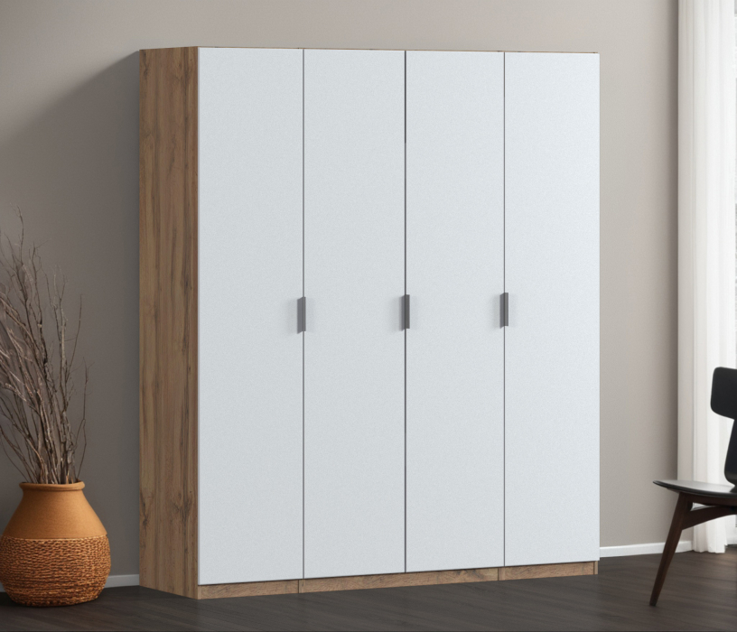Отзывы о Столплит Шкаф четырехдверный Макс 2000 мм, вариант №4 (ЛДСП, корпус дуб вотан) Белый Альпийский
