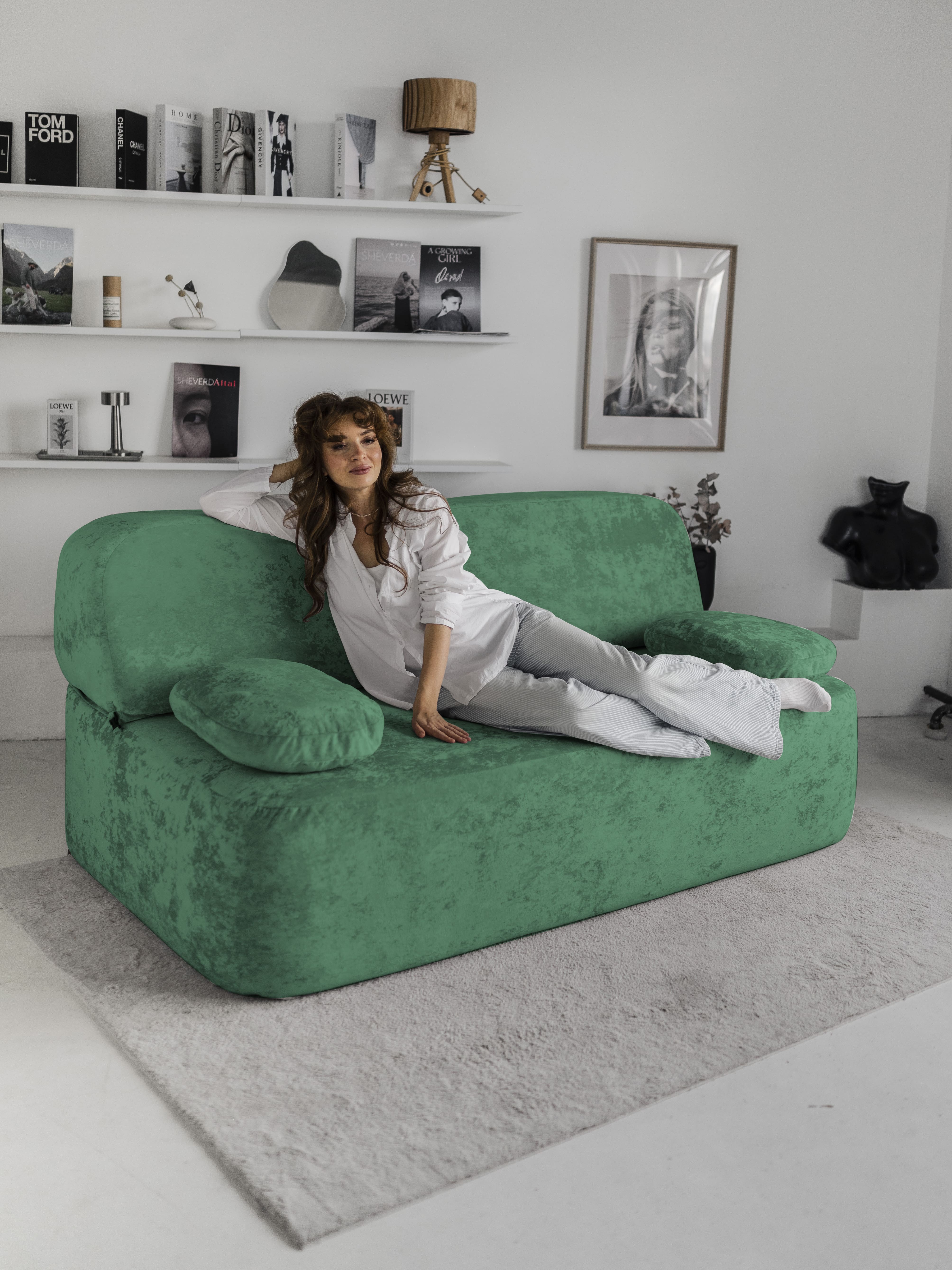 Бескаркасный диван Бабл, плюше (Велюр зеленый)