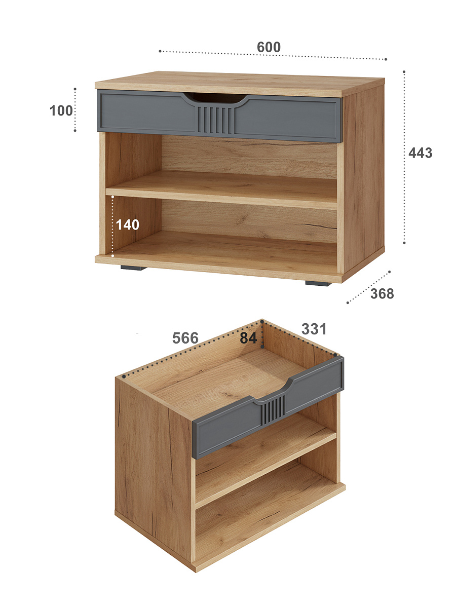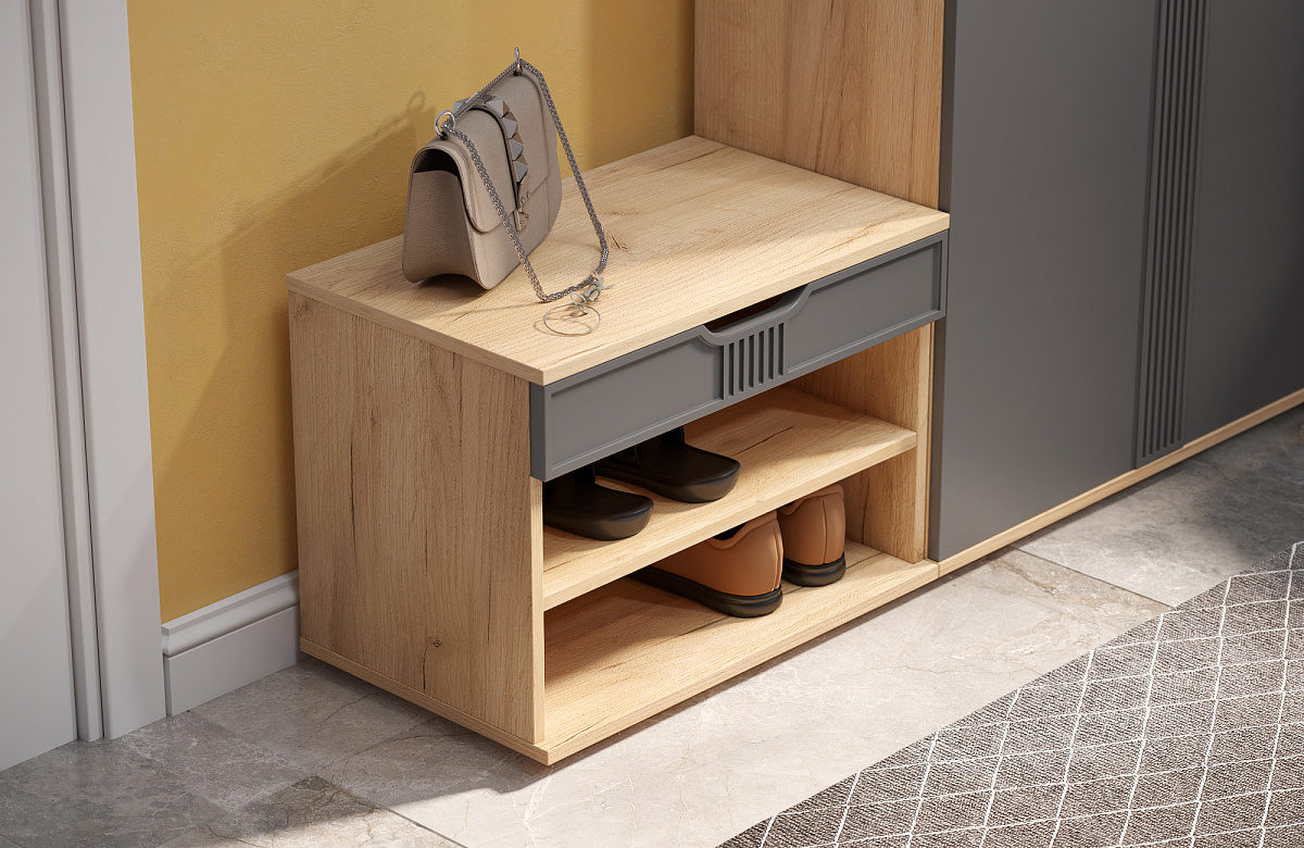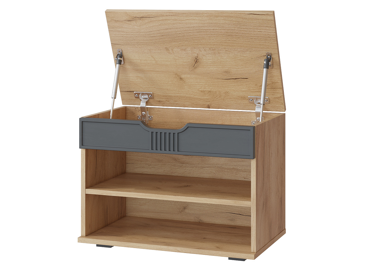 Тумба для обуви Эмилия ЭЛ-44 – компактная модель для комфортного переобувания в прихожую. Лаконичное изделие оборудовано двумя полками для обуви и сиденьем, под которым находится удобный ящик для хранения чистящих средств, щеток или зонта. Высота опоры 20 мм.