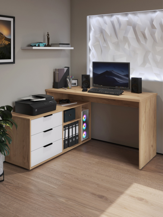 Размеры модуля (ш/в/г) в мм: 1269/1135/1004х880х553 Материал корпуса/фасада: ЛДСП 16 мм, МДФ 16 мм Основные характеристики стола ОП-21: дно ящиков — ДВП 3 мм. прочная стальная опора и тумба с четырьмя выдвижными ящиками для удобного хранения. столешница изготовлена из ЛДСП 16 мм. Преимущества стола ОП-21: Универсальность: подходит для использования в качестве письменного, компьютерного или маникюрного стола. Рекомендуется высокий стул. Фурнитура: телескопические направляющие полного выдвижения без доводчиков, металлические ручки и опора. Доставка и сборка: мебель поставляется в разобранном виде, в надежной упаковке, с подробной инструкцией по сборке. Сборка осуществляется самостоятельно или с привлечением специалистов.