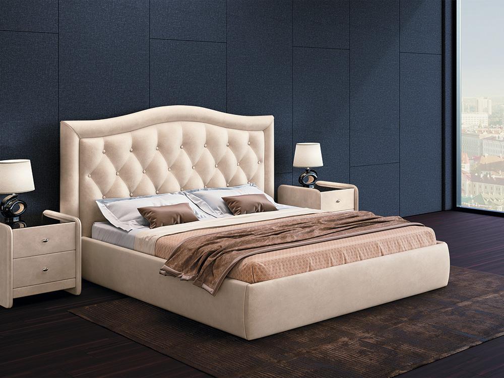 Кровать Грация в базовых тканях, с основанием и с подъемным механизмом, 160х200 (Бежевый Velure (Велюр)) Код I0000455921