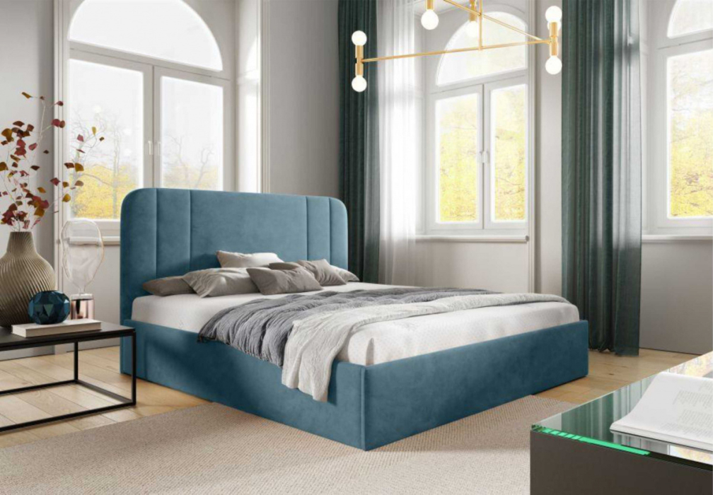Кровать Терра в базовых тканях, с основанием и без подъемного механизма, 160х200 (Велюр голубой) Код I0000456019