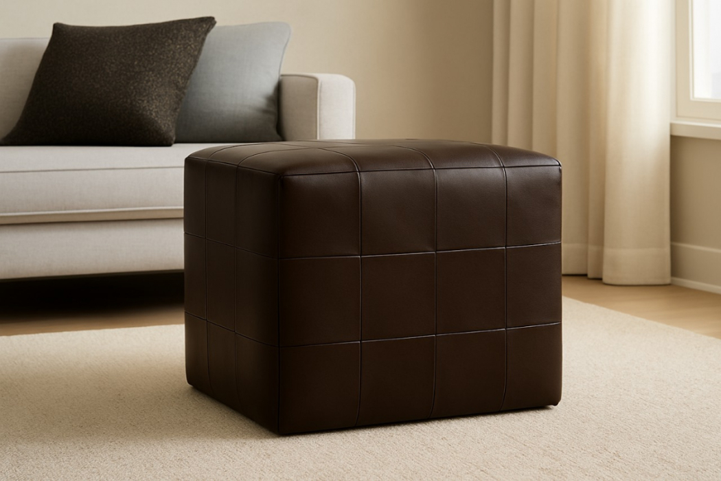 Обивка выполнена из премиальных материалов — вы можете выбрать ткань или кожу в зависимости от стиля помещения и личных предпочтений. Качественная отделка подчёркивает статусность пуфика и гарантирует его долговечность.