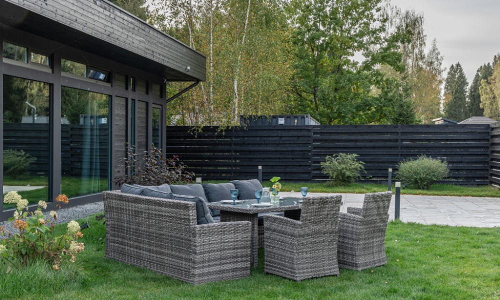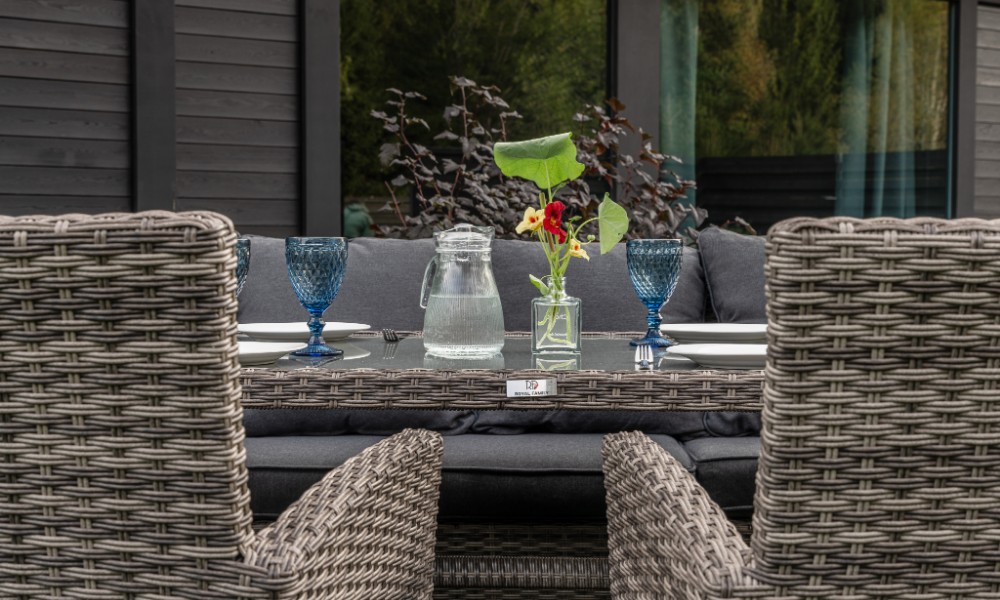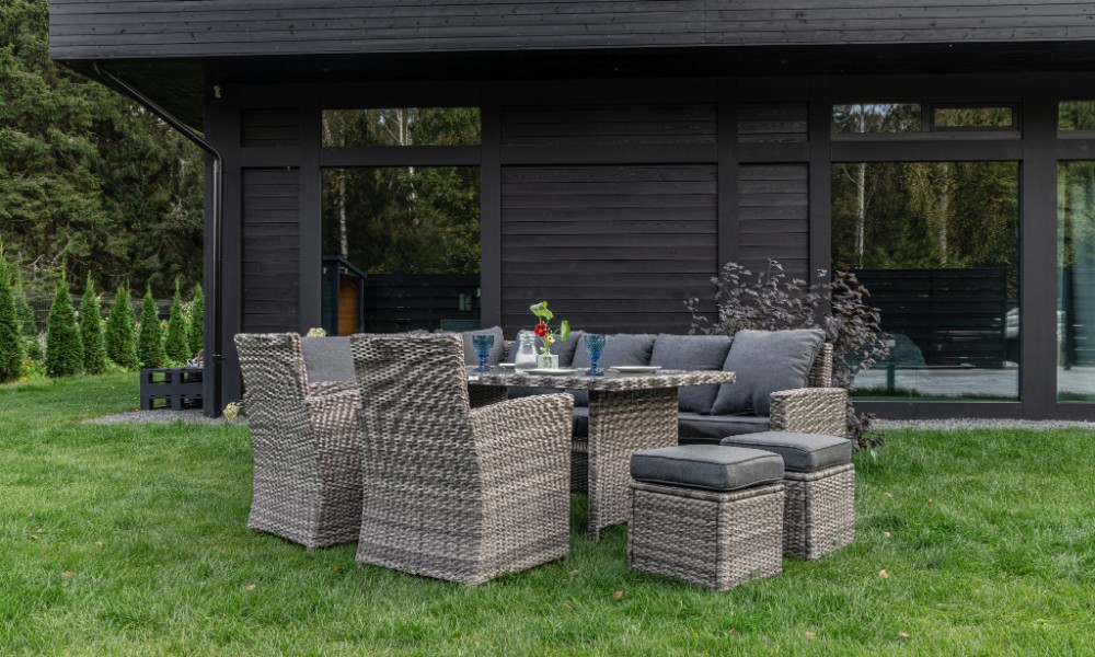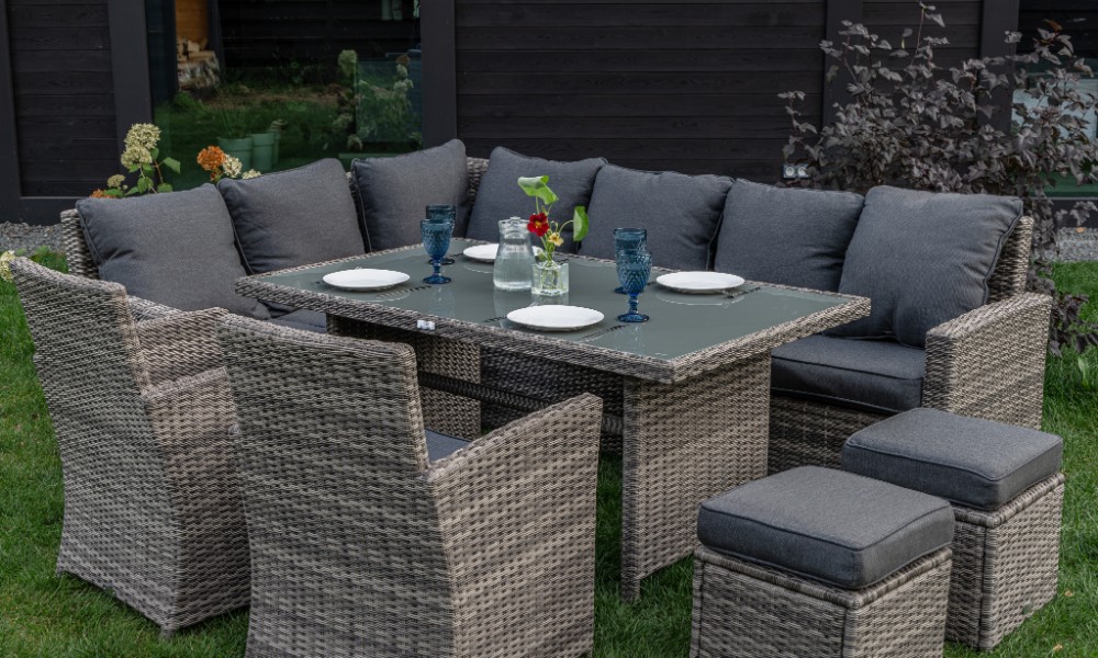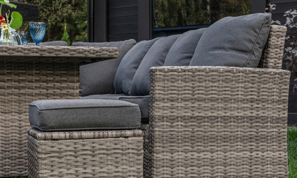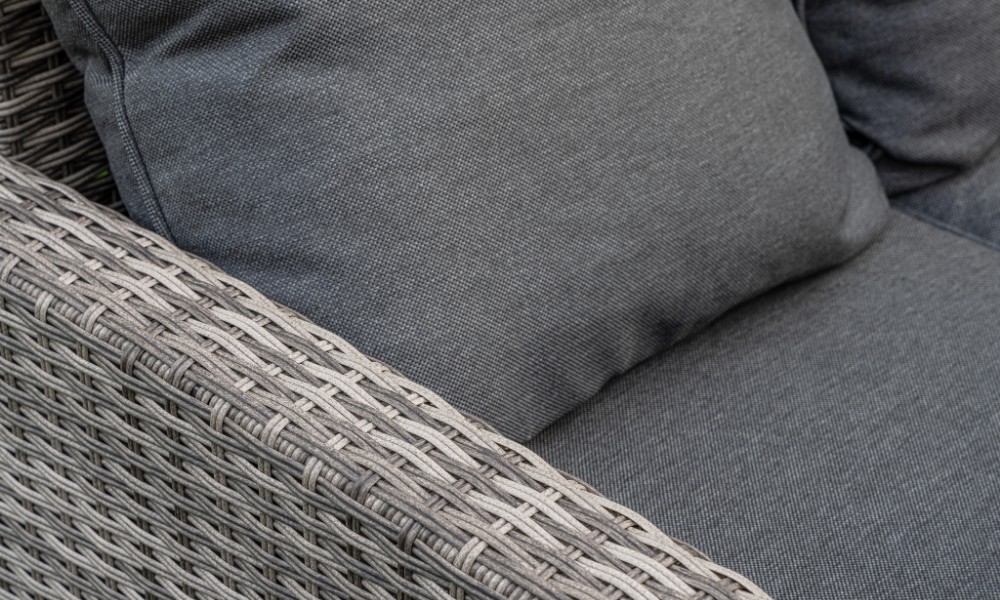 Материал комплекта - искусственный ротанг (ручного плетения)
