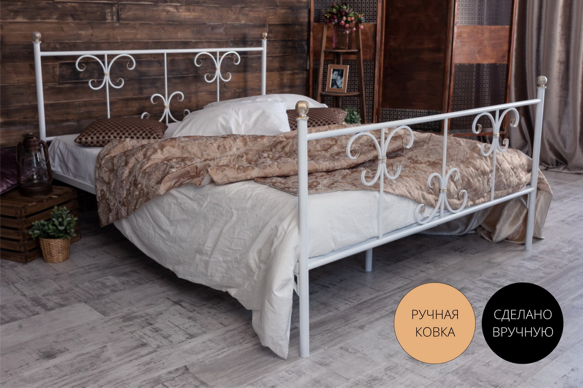Кованая кровать Симона 1.4 с двумя спинками (Белый)