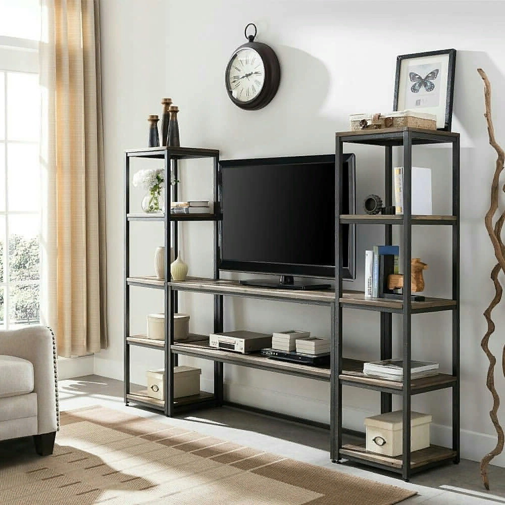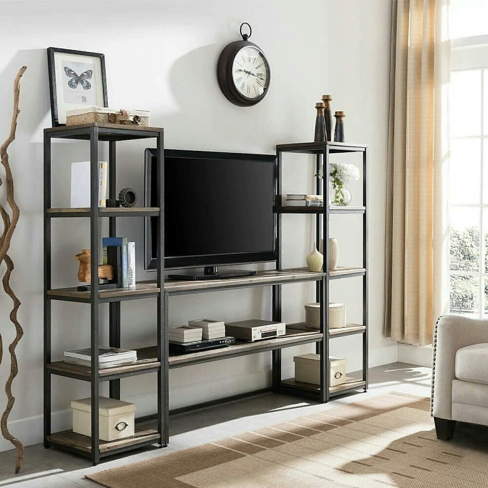 С ТВ тумбой , со стеллажом, глянцевые фасады, С полками