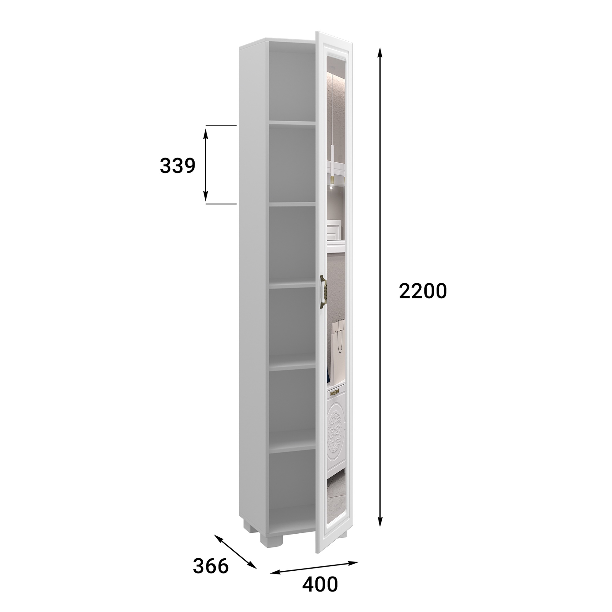 Цвет корпуса/фасада: белый структурный/белое дерево. Шкаф-пенал с зеркалом Монблан МБ-22К станет замечательным дополнением для обустройства комфортной и функциональной комнаты. За распашной дверью находятся полки, созданные для хранения сложенной одежды, белья, различных аксессуаров и коробок с обувью. Дверь шкафа может комплектоваться стеклом или глухим фасадом. Модуль может быть собран в зеркальном варианте "левым" или "правым". Высота опоры 50 мм.