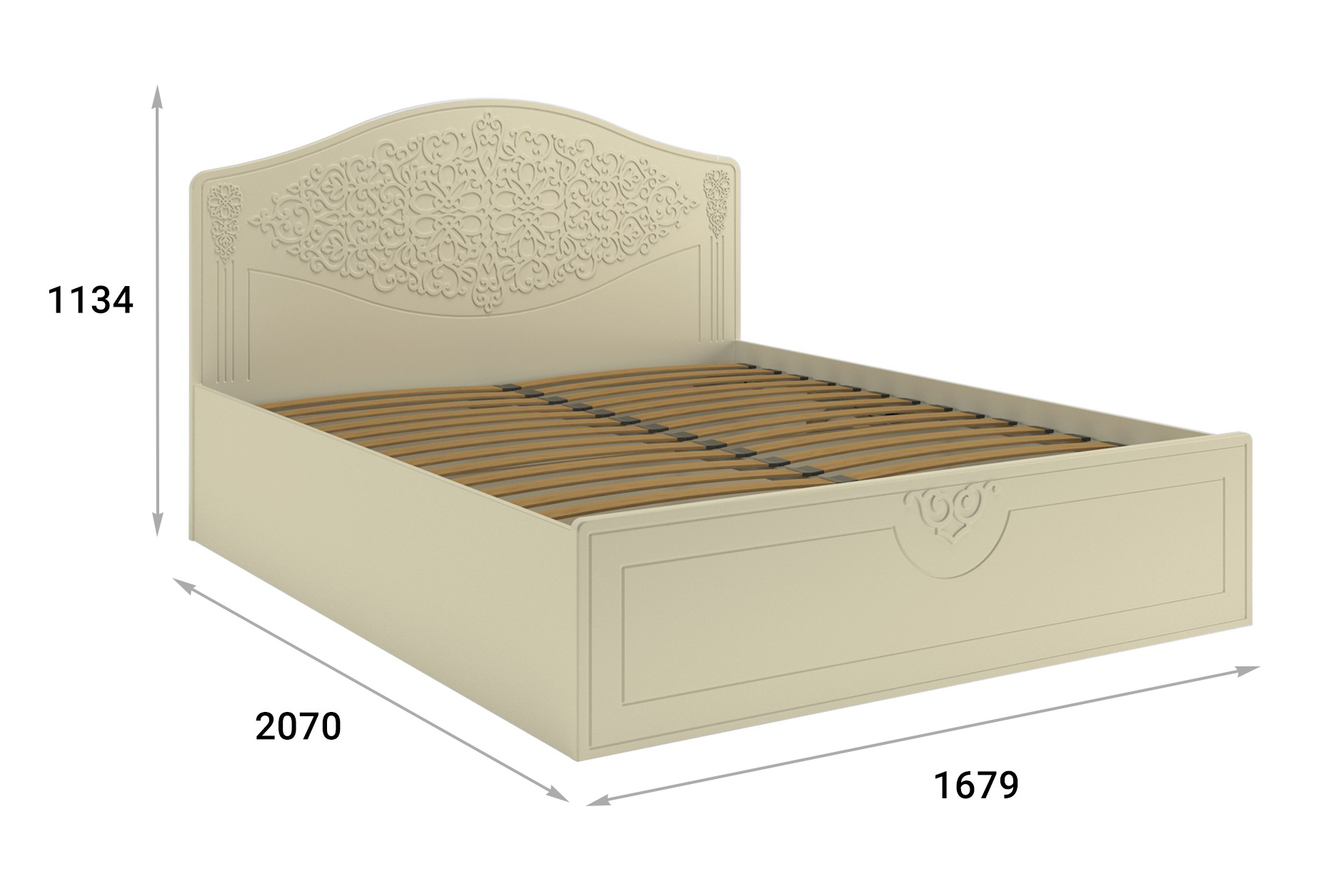 Кровать оснащена подъемным механизмом, обеспечивающим доступ в короб для хранения постельного белья. С двуспальной кроватью идеально подходит банкетка АС-34 для размещения рядом (в ногах).