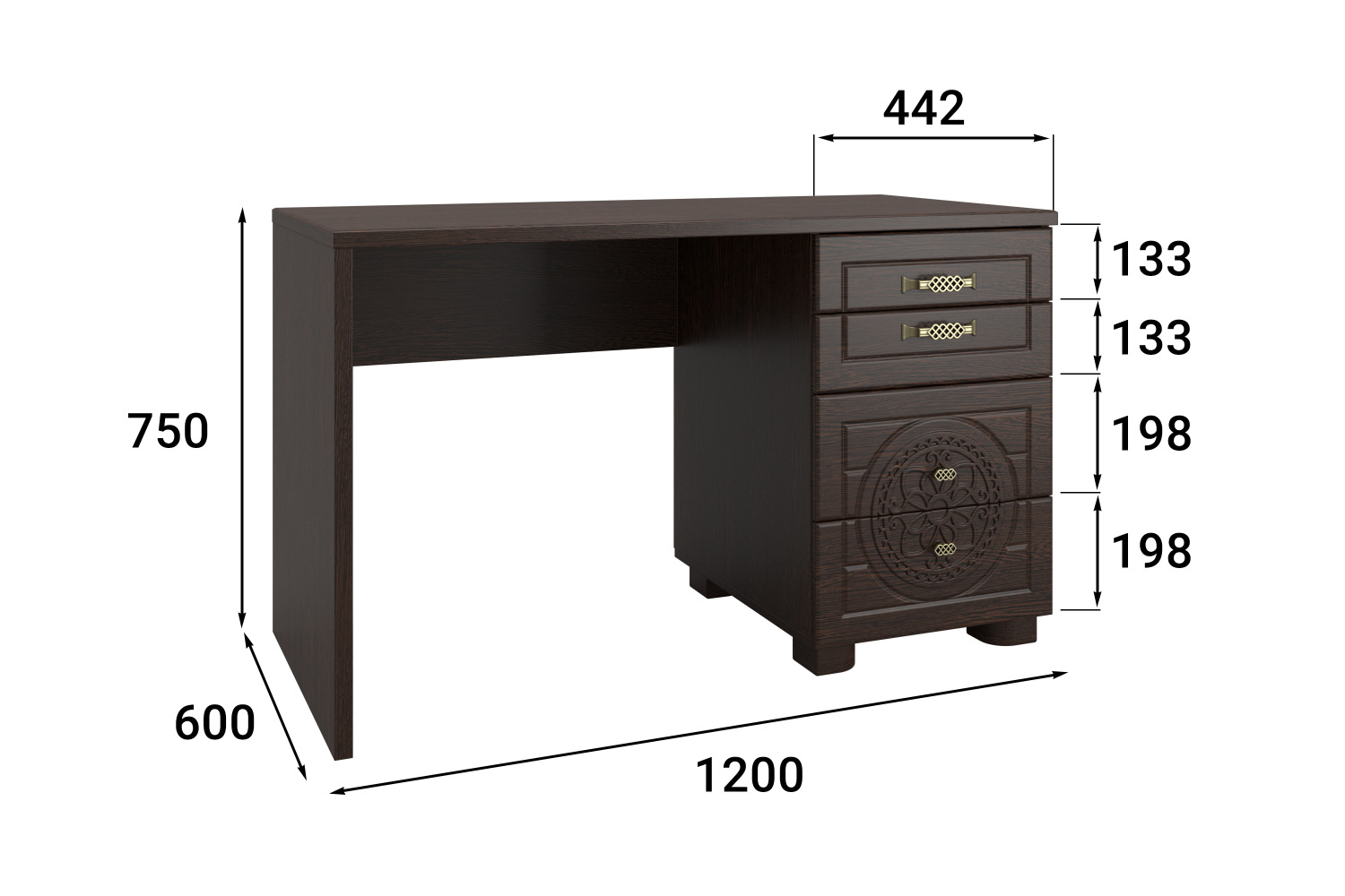 Толщина столешницы: МДФ 25 мм.