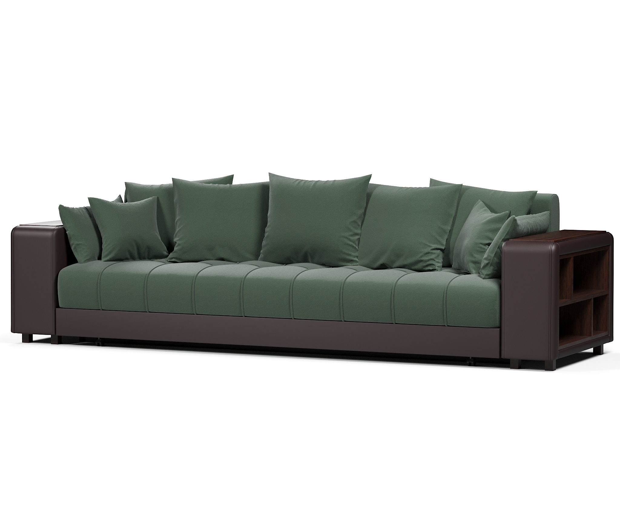 Прямой диван Дубай это отличный выбор для тех, кто планирует создать уют в своей квартире. Модель имеет выдержанный дизайн без элементов, которые перегружают её. С каждой стороны в подлокотниках установлены полки, куда вы сможете складывать различные мелочи, пульт итд.