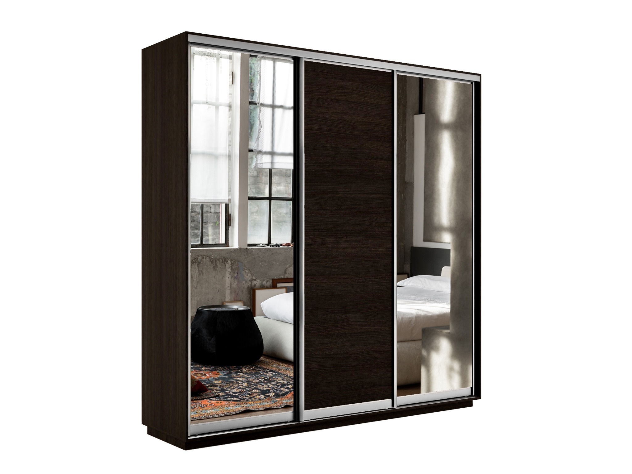 Отзывы о Столплит Шкаф-купе Экспресс Медиум (2 зеркала) трио 2400 x 2100 x 450 Венге