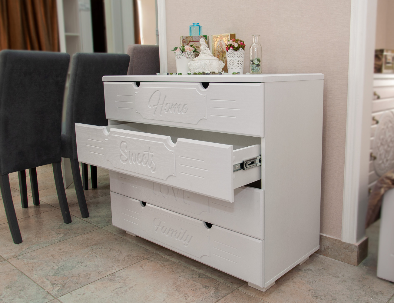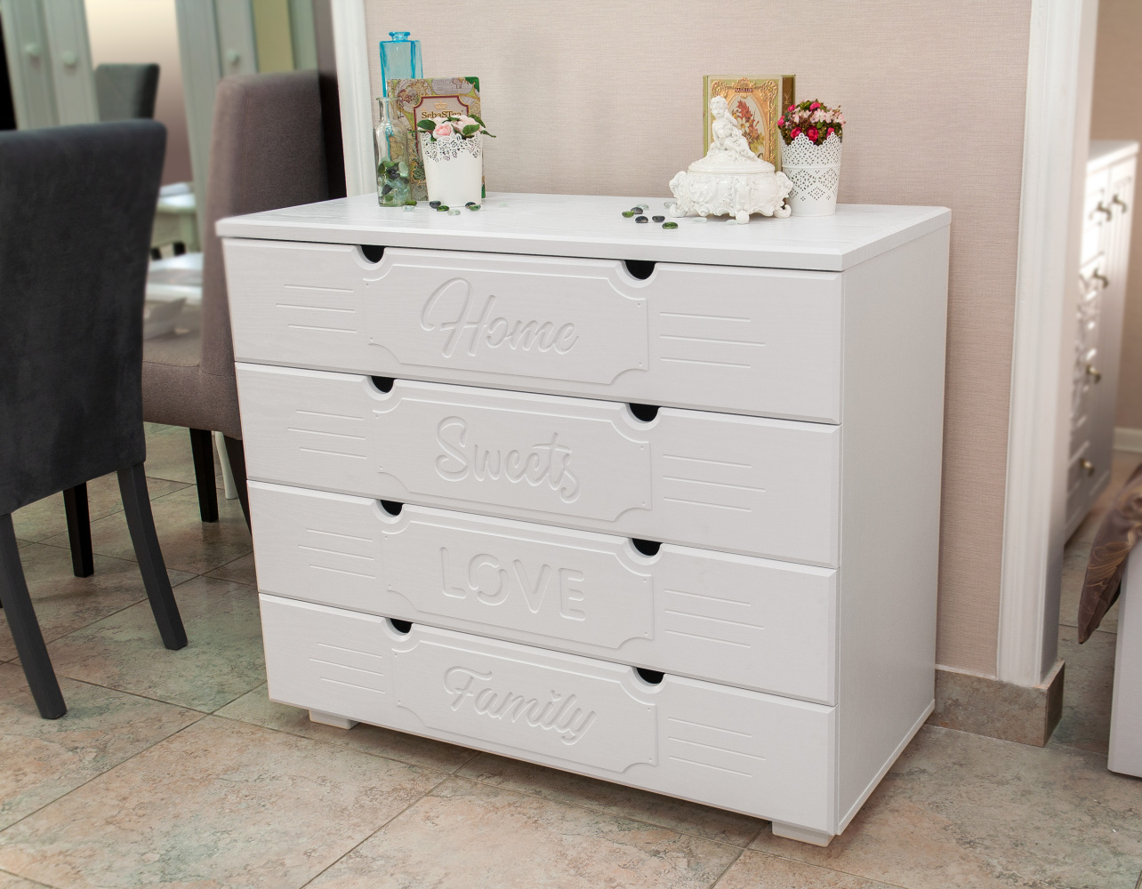 Прекрасный комод за свои деньги, брали для детских вещей, очень вместительный. Собрали быстро! Материал качественный!