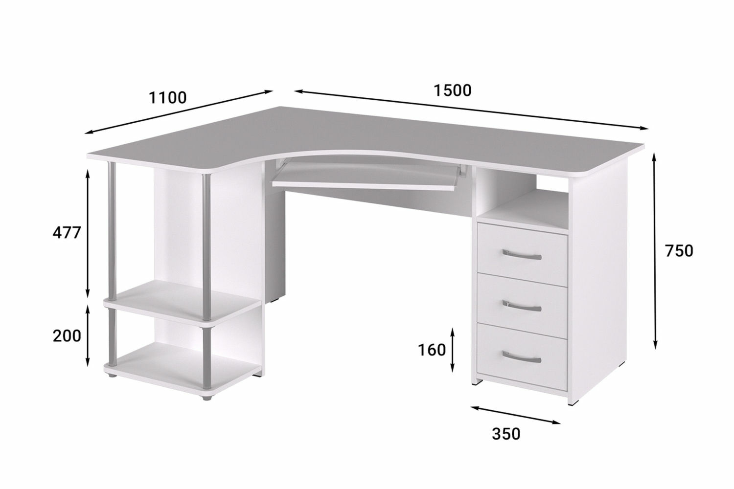 Материал корпуса/фасада: ЛДСП 16 мм. Размеры модуля (ш/г/в) в мм: 1500х1100х750.
