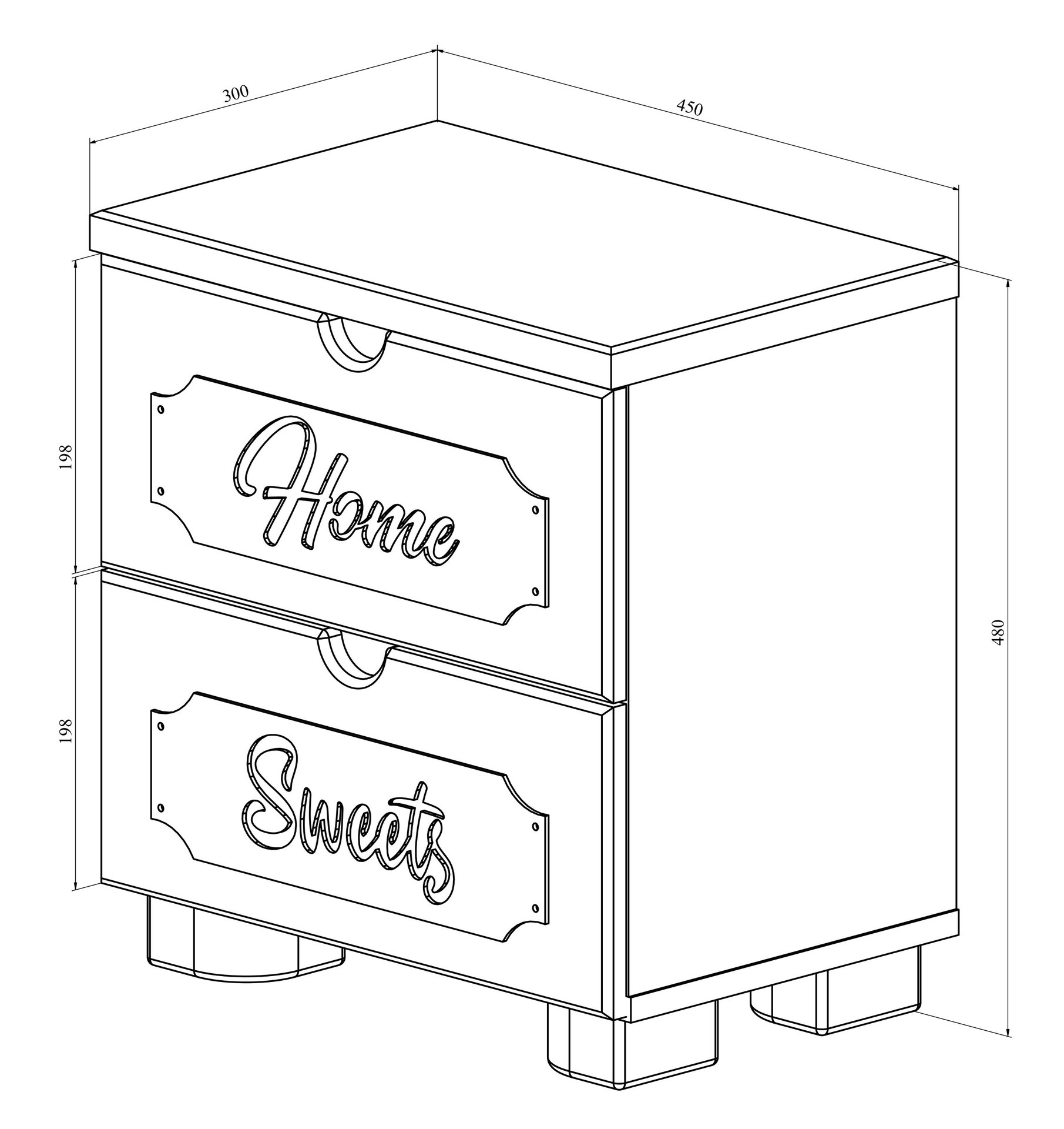 Материал корпуса/фасада: ЛДСП/МДФ. Цвет корпуса/фасада: белое дерево. Размеры модуля (ш/г/в) в мм: 450х300х480. Особенности: столешница изготовлена из МДФ толщиной 25 мм. В ящиках используются телескопические направляющие полного выдвижения.