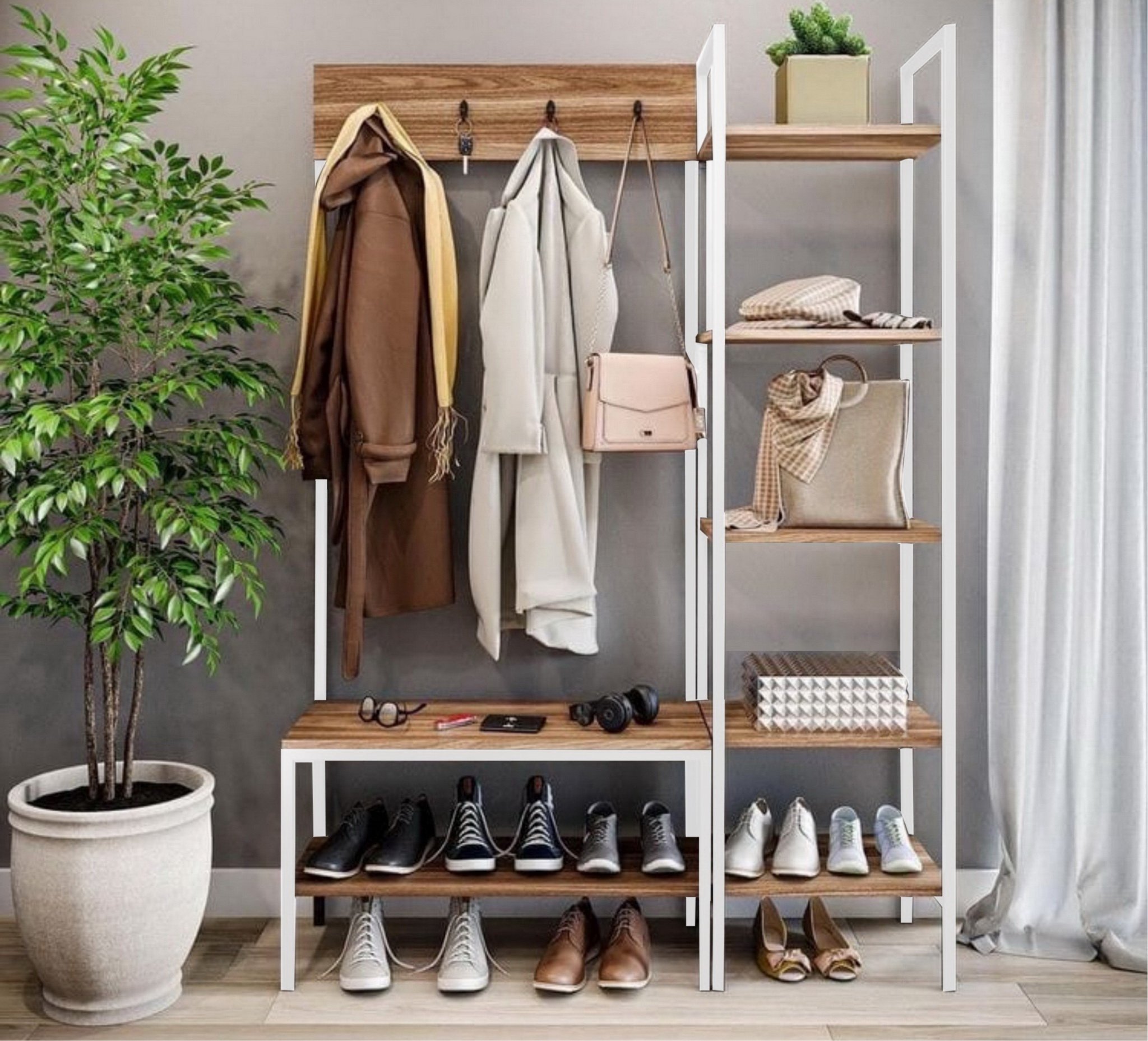 С полками, Без шкафа, С сиденьем, с вешалкой, с обувницей