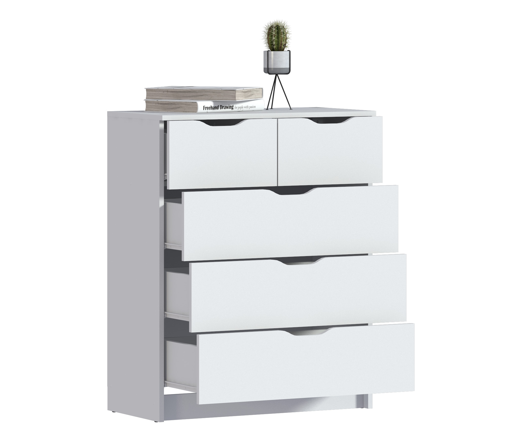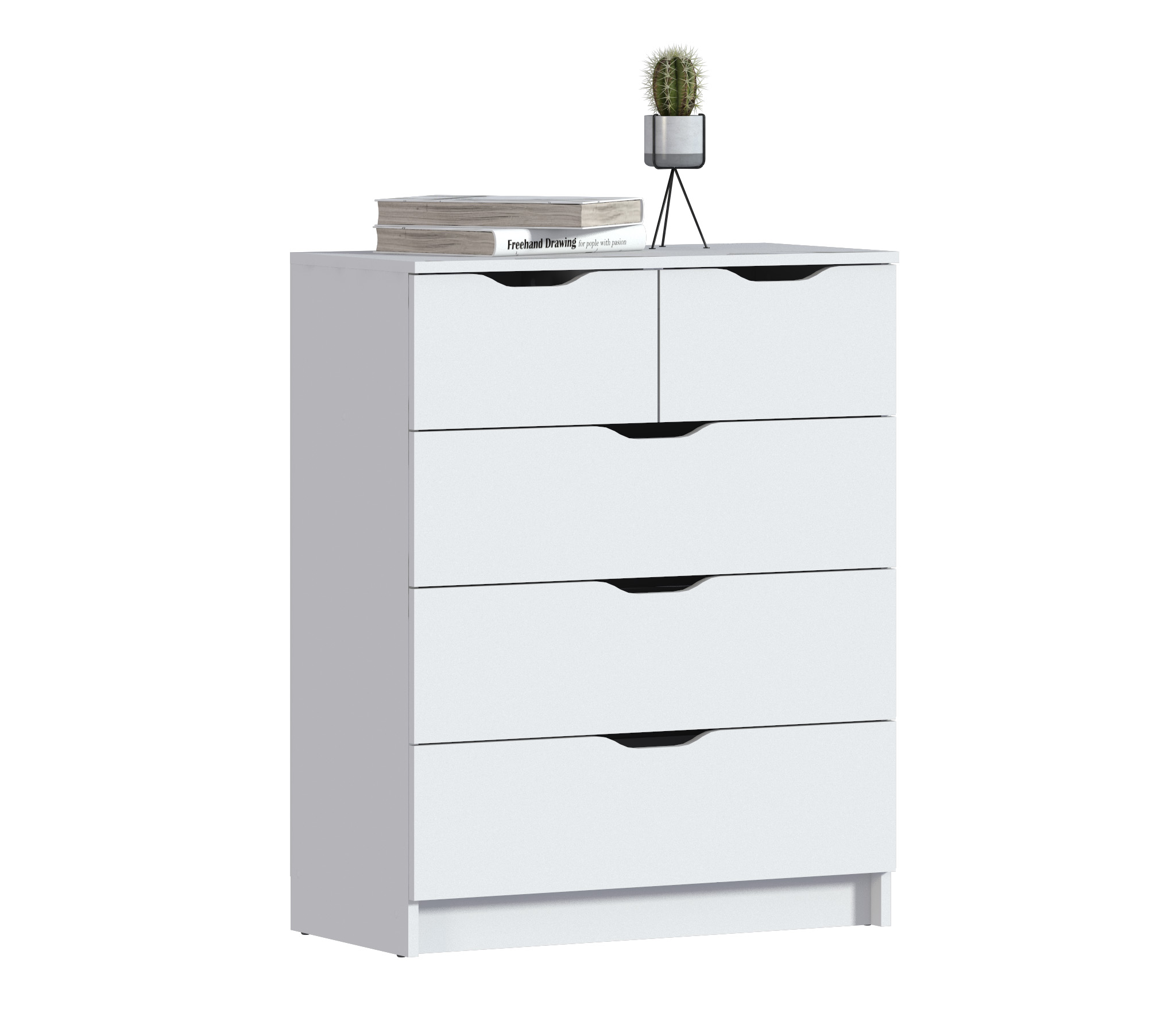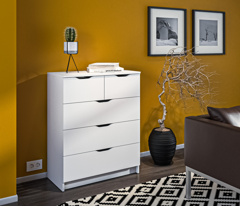 Комод имеет пять вместительных ящика.