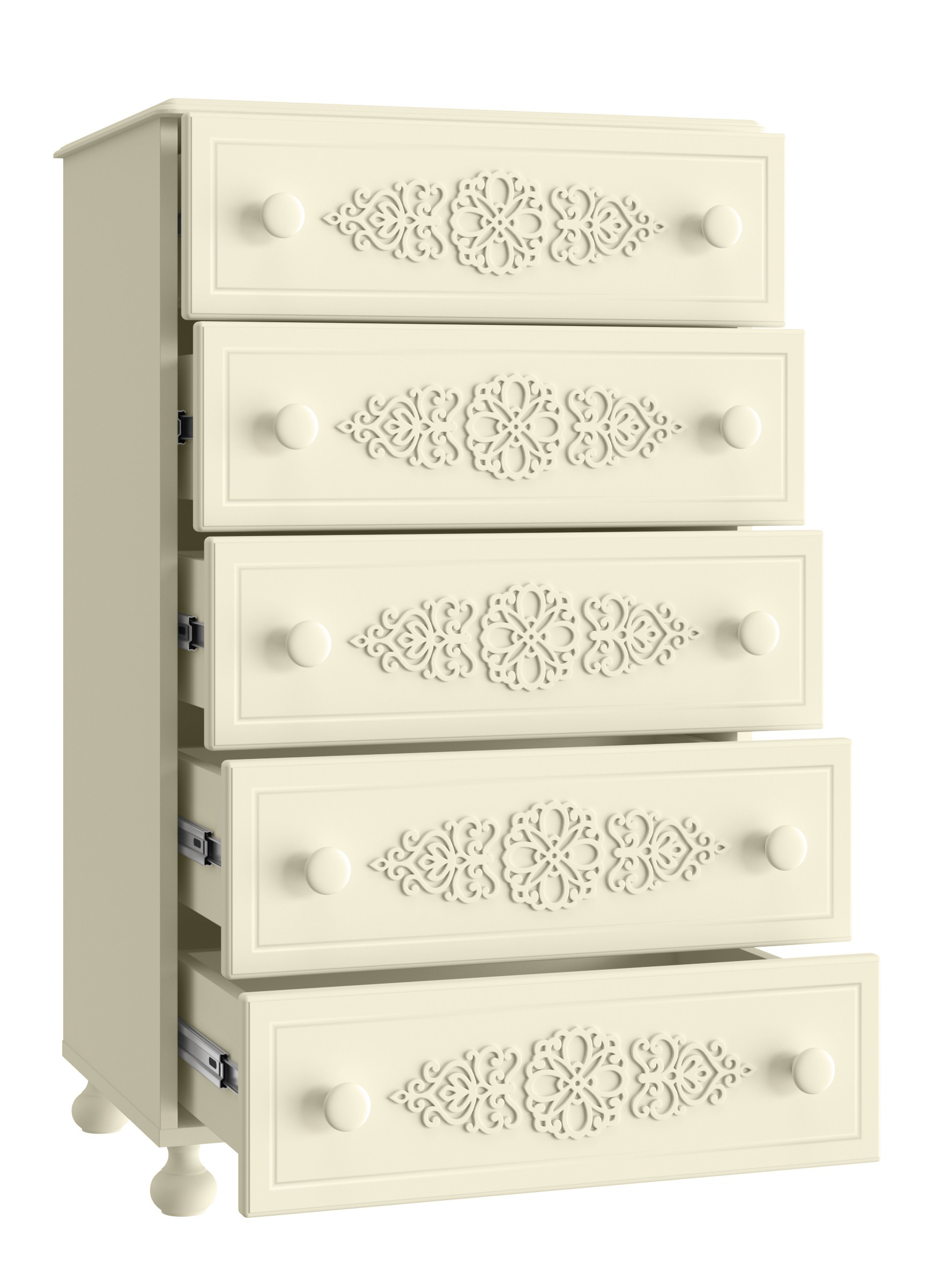 Роскошный комод из коллекции мебели Ассоль АС-62, несомненно, станет украшением Вашей гостиной или спальни. Выдвижные ящики оснащены современными телескопическими направляющими, обеспечивающие плавное и бесшумное выдвижение просторных ящиков. Распашные дверцы имеют качественные петли с плавными доводчиками закрывания. Фурнитура: петли с доводчиками, телескопические направляющие полного выдвижения. Высота опоры 65 мм. Мебель изготовлена из качественной ламинированной ДСП 16 мм. В оформлении фасадов МДФ применяется уникальная технология нанесения объемного узора 3D.