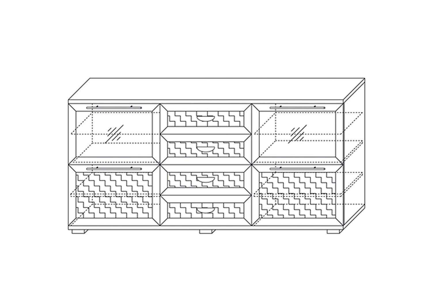 При меблировке спальни в современном стиле обратите внимание на большой функциональный комод в коллекции Парма Нео. Этот модуль наделен отличной системой хранения, в нем присутствуют выдвижные ящики, отделения с дверками. Благодаря наличию стеклодверей изделие смотрится более легким и имеется возможность красиво расставить фужеры или другую красивую посуду на стеклополках. Четыре выдвижных ящика помогут аккуратно хранить белье, аксессуары и другие предметы обихода.