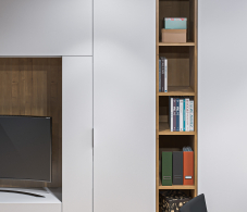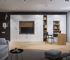 Модульность элементов позволяет самостоятельно создать шкаф с нужными вам параметрами: расположение и количество полок, ящиков, штанг и вариантов дверей зависит только от вашей фантазии.