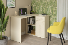 Угловой стол Ассоль АС-67 станет отличным местом для работы. В выдвижном ящике можно хранить блокнот, канцелярские принадлежности. Стильный дизайн позволит разместить в любом современной интерьере. Модуль может быть собран в зеркальном варианте "правым" или "левым". Фурнитура: телескопические направляющие полного выдвижения, петли с доводчиками.
