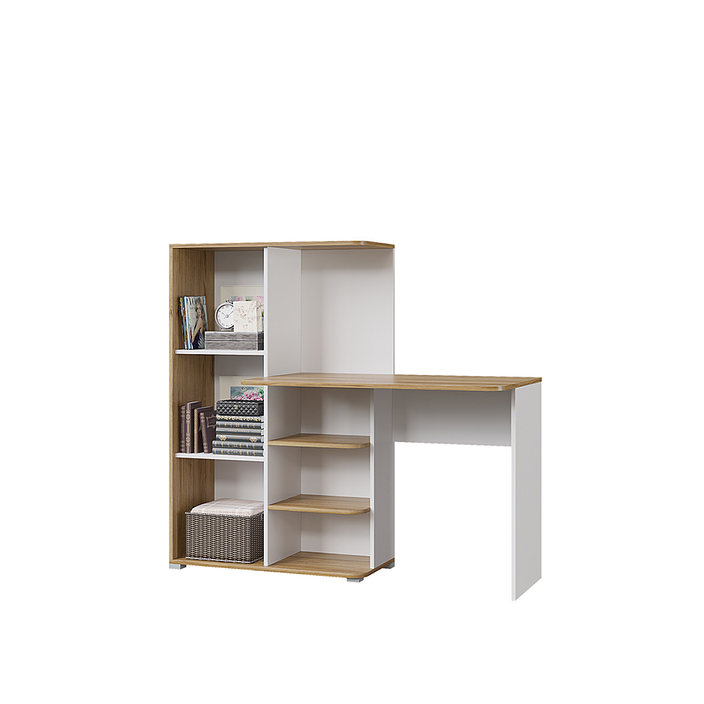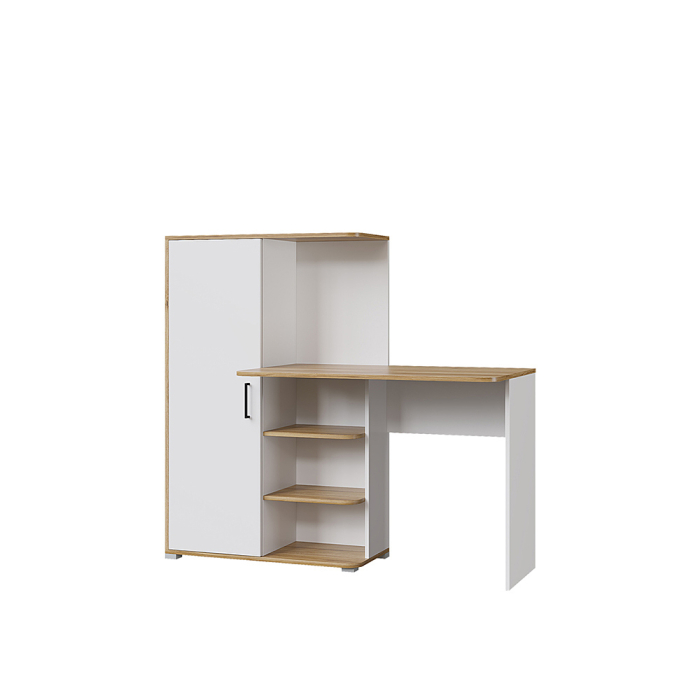 Удобный и практичный стол всегда нужен в детскую. Именно он помогает вашему ребенку учиться и развиваться. Модель имеет просторный шкаф, в котором можно разместить все вещи для учебы. Также в столе присутствуют 3 открытые полочки, на которые можно сложить учебники. В качестве материала используется безопасный ЛДСП. Его структура позволяет сделать прочный стол, который прослужит много лет.
