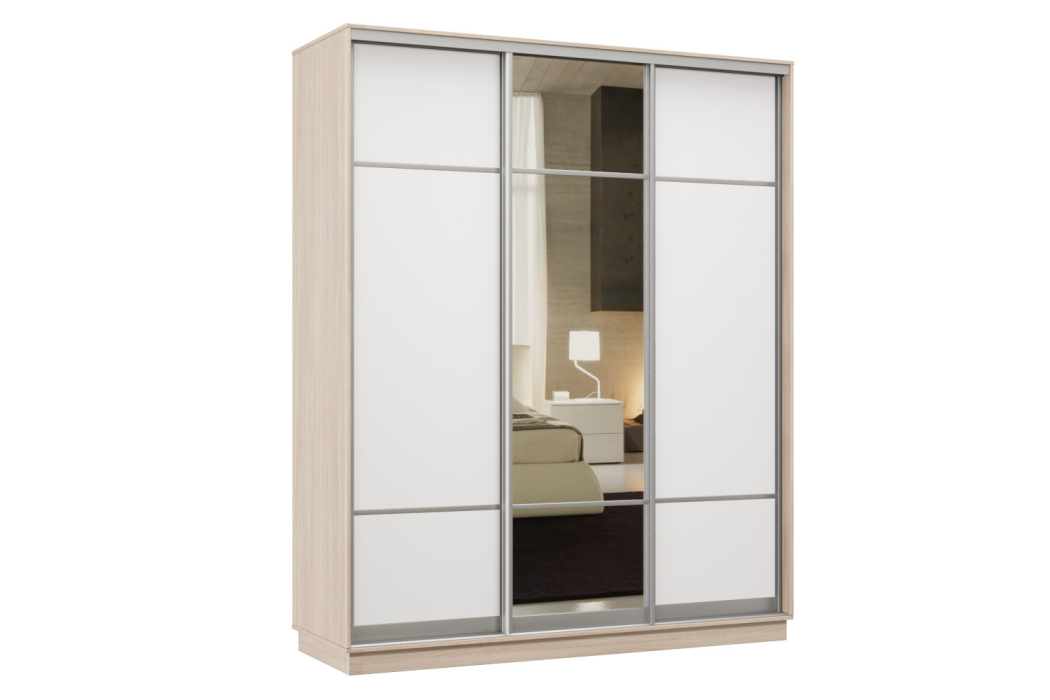 Шкаф-купе Премьер Лайт 21 (08;11;08) трехдверный (Ясень шимо светлый / Белый глянец)
