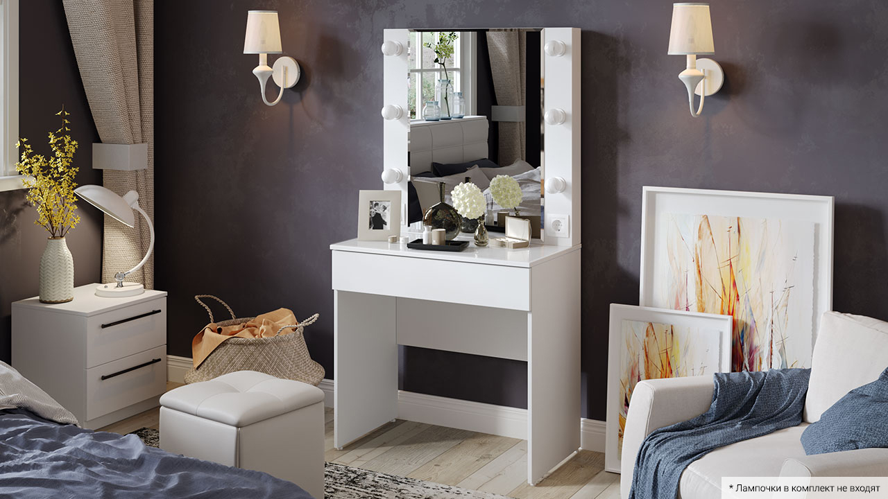 Туалетный столик с зеркалом (лампочки в комплект не входит).