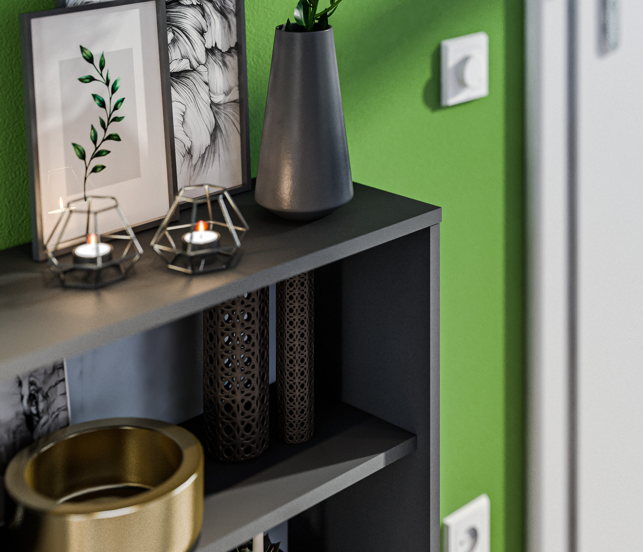 Выполнен стеллаж из современного и прочного ЛДСП.