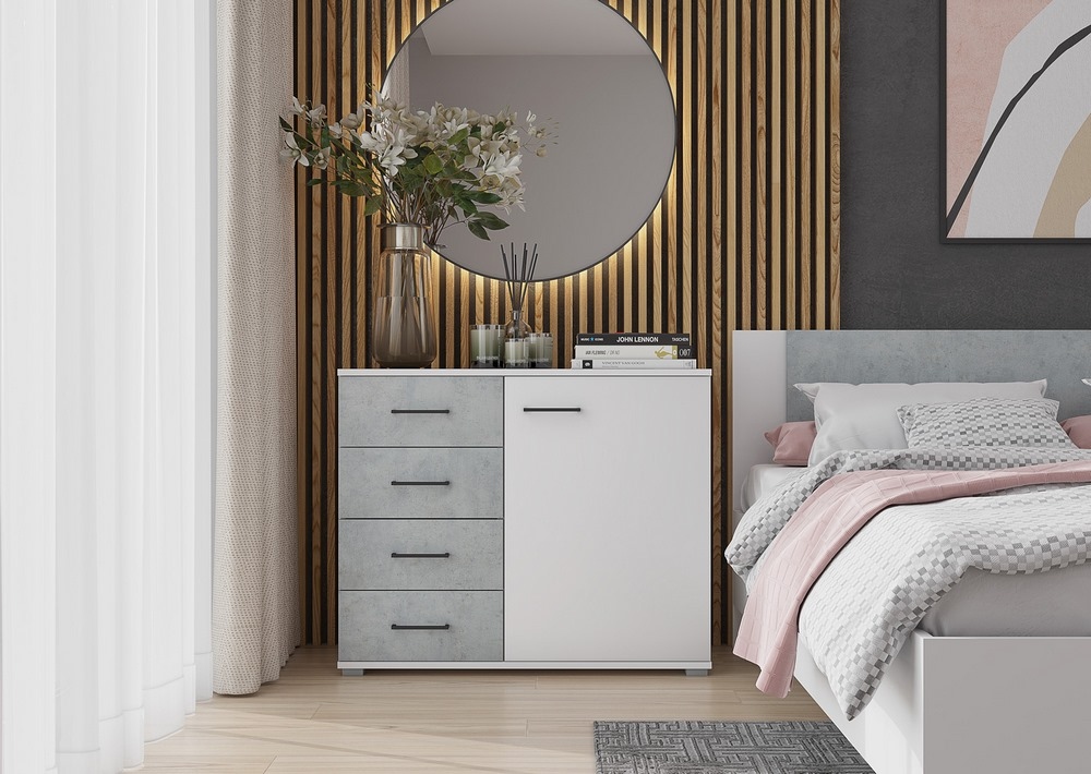 Комод из модульной системы Nova имеет 4 ящика и 1 дверь.