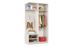 В комплекте 3 крючка для одежды. Используется штанга для одежды. Максимальная нагрузка до 12 кг. Задняя стенка - ДВП белая облагороженная.