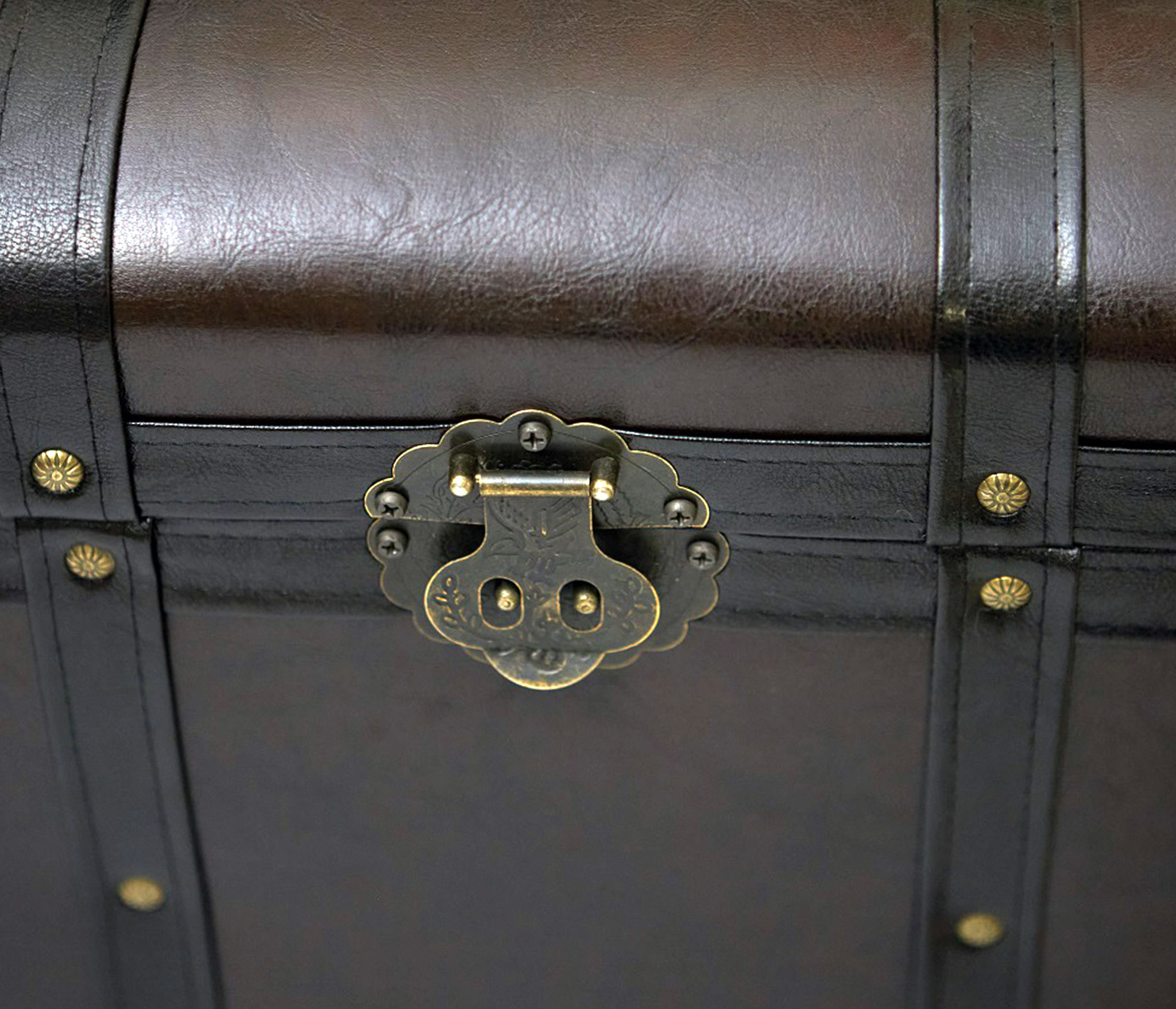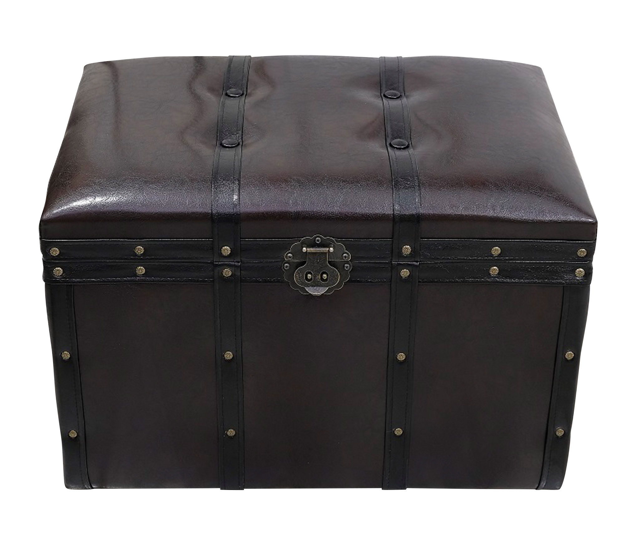 Банкетка с ящиком для хранения малая с ремнями представлена в виде напольного сундука в старинном классическом стиле. Пуфик удивительно красив и функционален: может использоваться и как пуф-банкетка и как объемный короб для хранения. Декорирован ремнями и металлическими бронзовыми гвоздями. Внутреннее пространство отделано спанбондом. Сундук стоит на пластиковых ножках. Материал обивки: эко-кожа благородного темно-шоколадного оттенка.Пуфик подойдет в прихожую, коридор, в спальню, в гостинную, в детскую, в кухню, в зал прекрасно впишется в любой интерьер офиса, дома или дачи. Пуф мягкий идеальный подарок мужчине или женщине на свадьбу, годовщину или юбилей. Подарок любимой, маме, жене, подруге. Сундук очень удобен в использовании в качестве пуфа или банкетки. Его крышка изготовлена из прочного материала, способного выдерживать большую вертикальную нагрузку до 200кг. Объемное внутреннее пространство банкетки, позволяет хранить различные предметы домашнего обихода и вещи. Элегантный пуфик банкетка будет служить местом для сидения и дополнительным местом для хранения. Пуфики удобны в качестве тумбы, прикроватного туалетного столика, полки, обувницы, стула, коробки для хранения. В ящик банкетки можно сложить обувь, книги, игрушки , постельное белье. Пуф с крышкой , банкетки разных цветов , размеров и фактур : большие, высокие, круглые, велюр, из рогожки, на ножках и без, из экокожи, ткани, с каретной стяжкой представлены в нашем магазине. Банкетку удобно использовать для сидения и в качестве подставки для ног или лежака для животных. Прочный каркас, качественные материалы, эксклюзивный дизайн, стильная обивка не оставят равнодушными взрослых и детей. Наполнитель для пуфа упругий поролон. Такой пуфик-банкетка альтернатива круглому пуфу, бескаркасному пуфу, отличная замена пуфа мешка.
