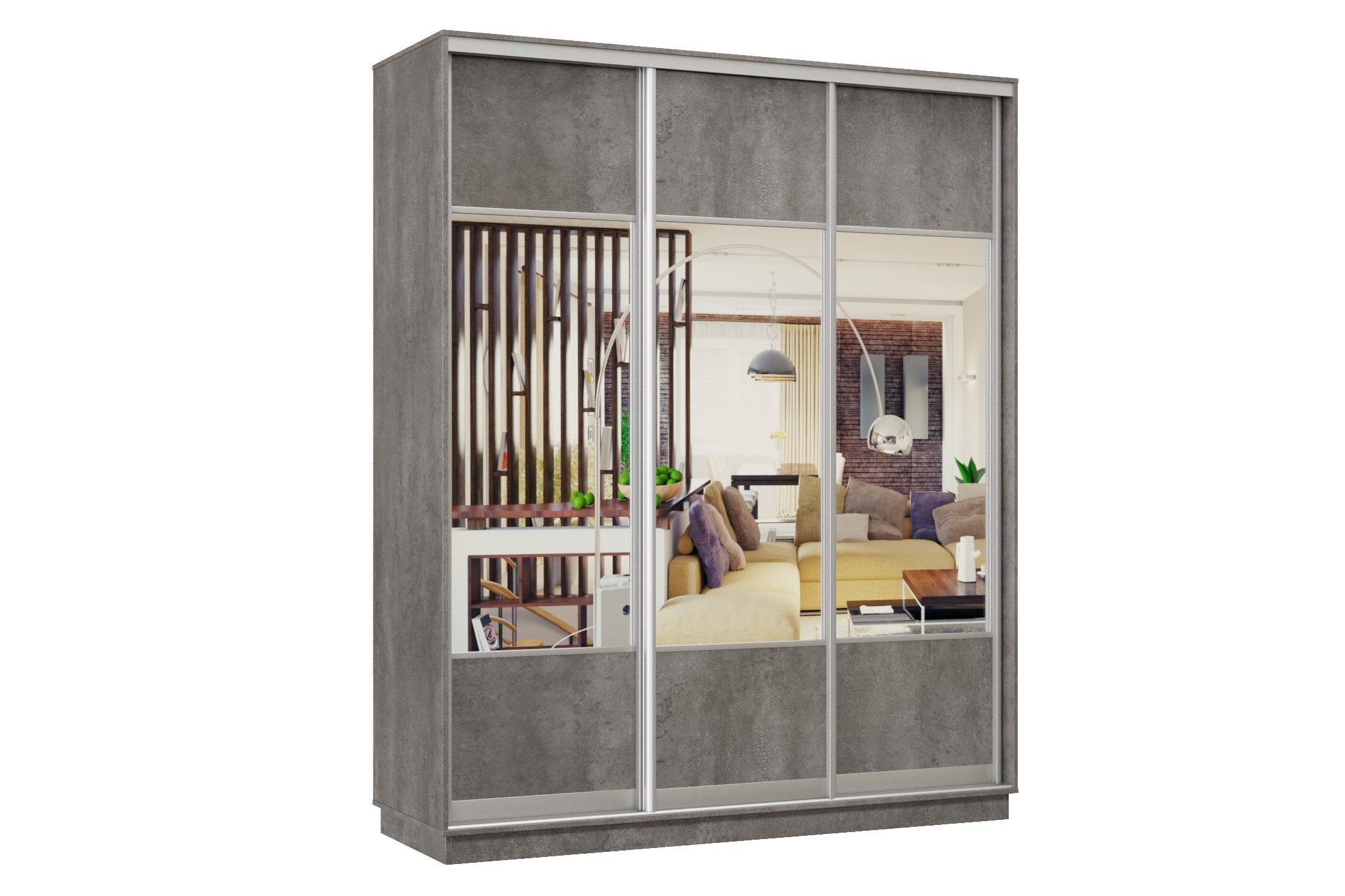 Шкаф-купе Премьер Лайт 24 (05;05;05) трехдверный (Бетон)