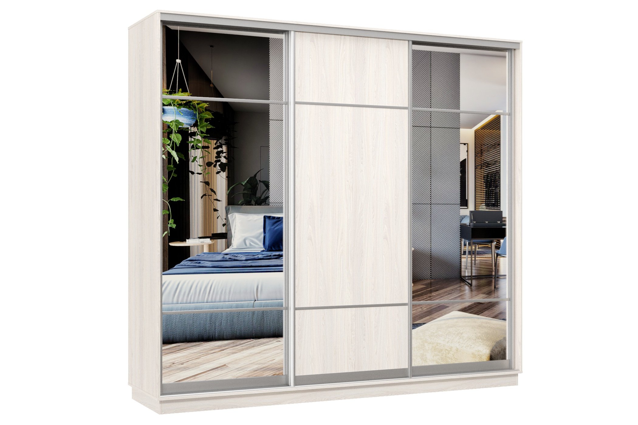 Шкаф-купе Премьер Лайт 57 (11;08;11) трехдверный (Ясень Анкор светлый)