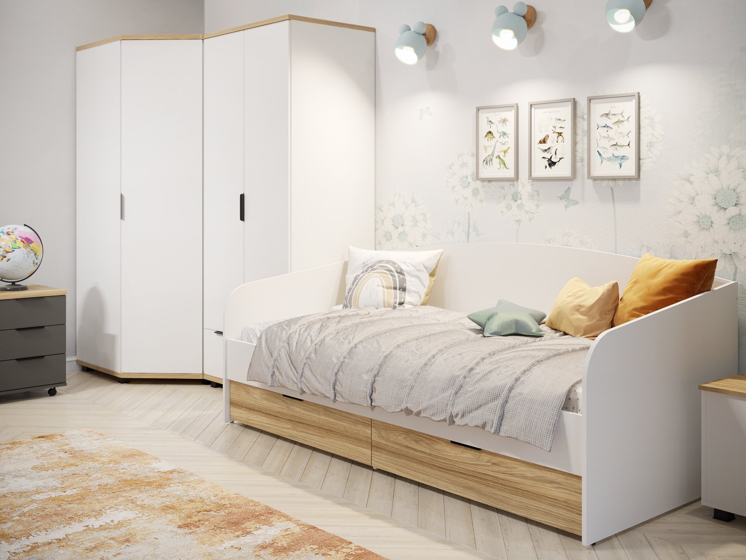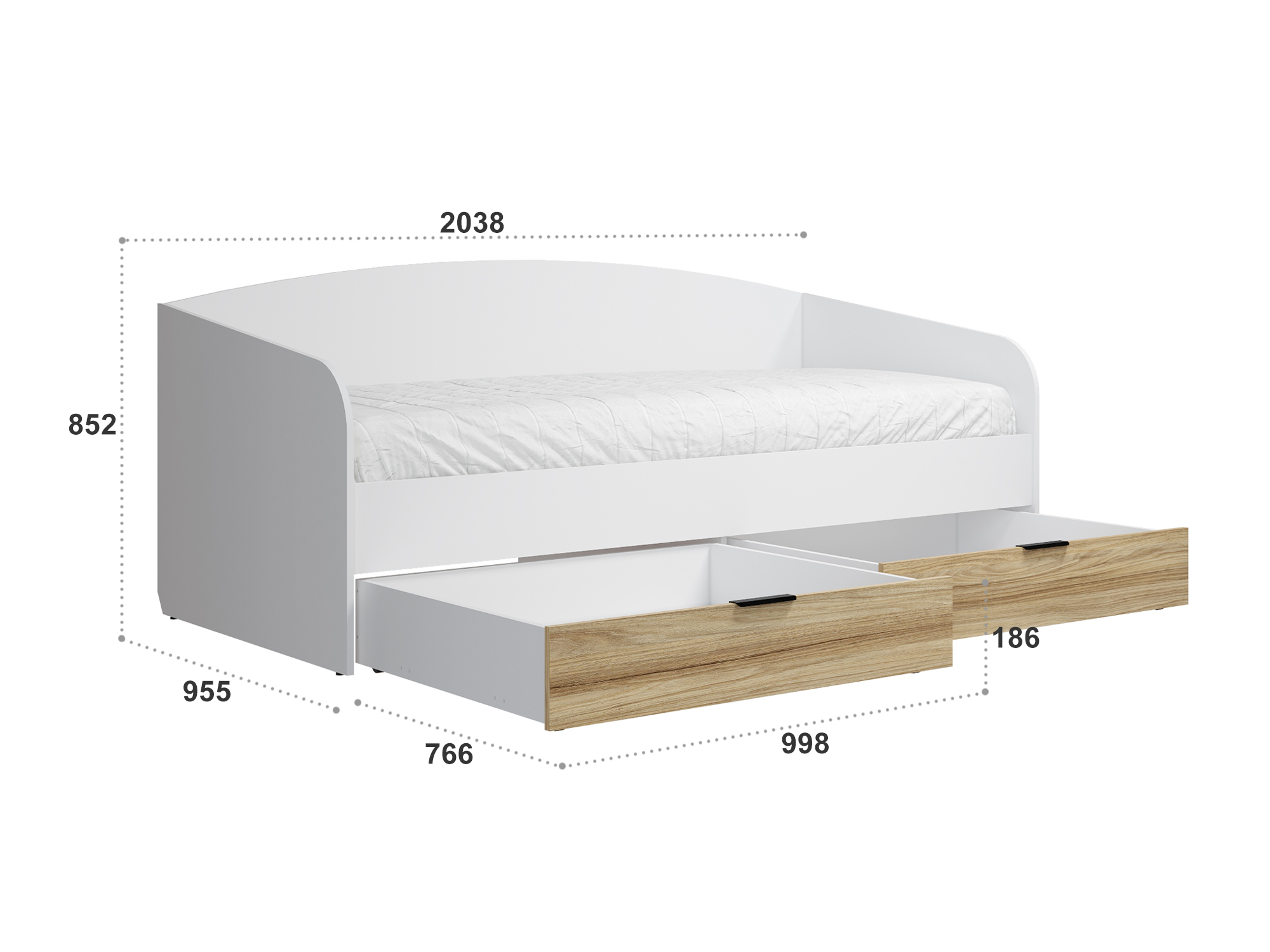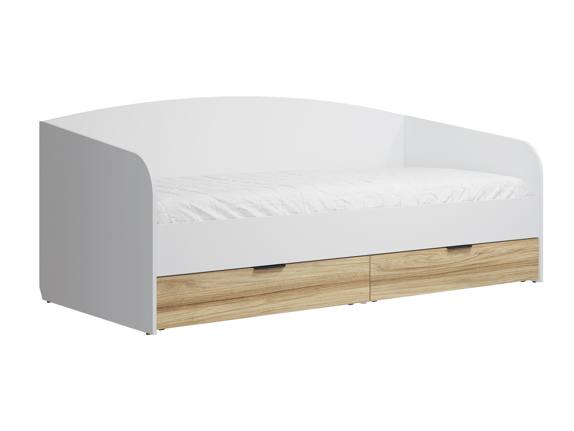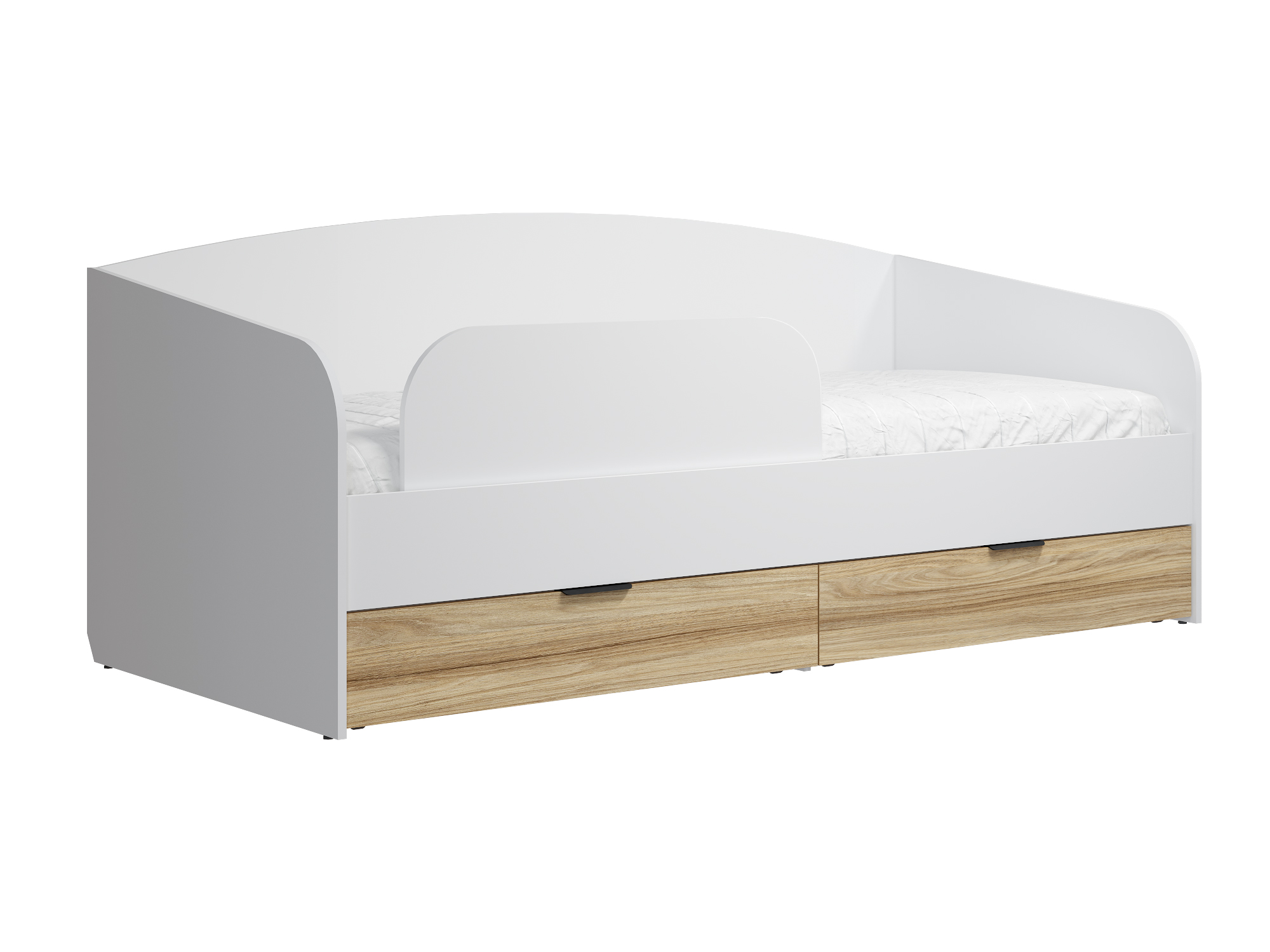 Кровать односпальная Скайлайт СЛ-31К идеальна для детской и подростковой комнаты. Спинки кровати имеют плавные линии без острых углов, что особенно актуально для активных детей. Основание кровати: ЛДСП. Высота изножья ___ мм. Фасады и царги изготовлены из ЛДСП 16 мм. Кровать имеет два выкатных ящика глубиной 766 мм для хранения вещей, игрушек или постельного белья.
