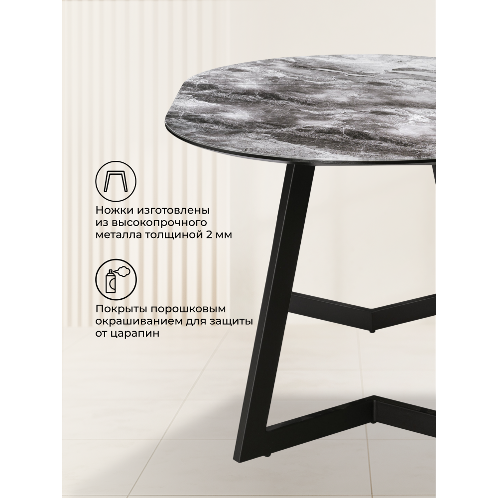 Материал каркаса - Металл; Материал ножек - Металл; Материал столешницы - Стекло 4мм; Основа столешницы - МДФ 16мм; Ширина - 100; Высота - 76; Длина стола в разложенном виде - 140; Длина - 100;
