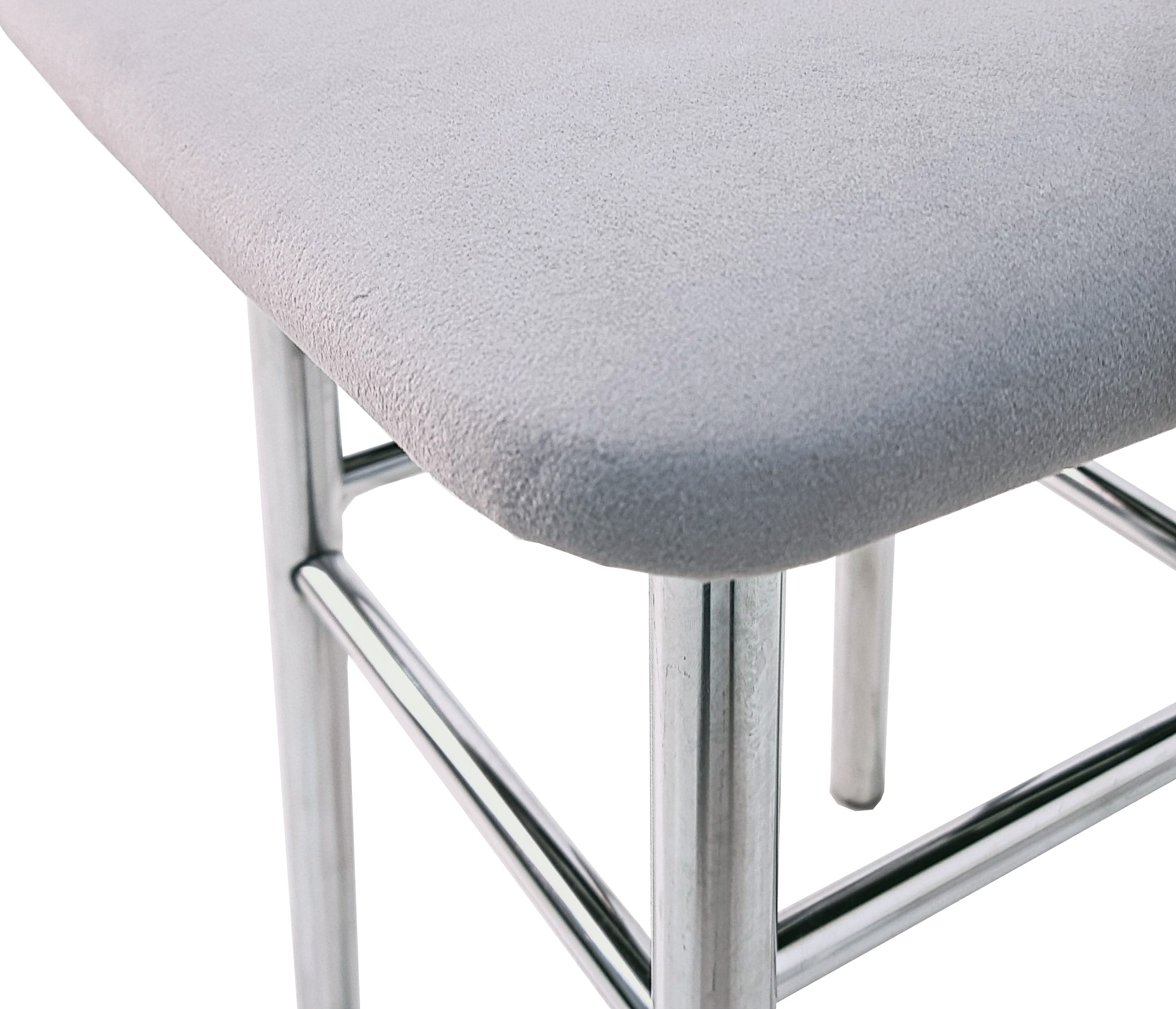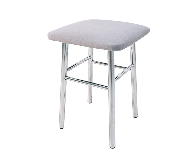 Каркас выполнен из хромированной трубы D25 мм; толщина трубы 1 мм. Сиденье из ткани. Высота табурета 450 мм, ширина сидушки 330 мм, ширина по опорам внизу 270 мм.