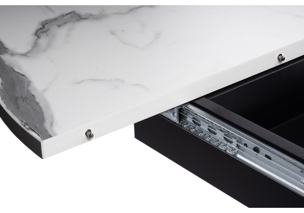 Толщина столешницы: 2,5 см. Материал каркаса - Металл; Материал ножек - Металл; Материал столешницы - ЛДСП; Цвет каркаса - Черный; Цвет ножек - Черный; Ширина - 100; Высота - 75; Длина стола в разложенном виде - 130; Длина - 100.