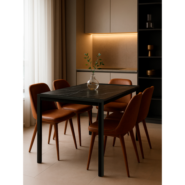 Материал каркаса - Металл; Материал ножек - Металл; Материал столешницы - ЛДСП; Цвет каркаса - Черный; Цвет ножек - Черный; Ширина - 70; Высота - 75; Длина стола в разложенном виде - 160; Длина - 120.