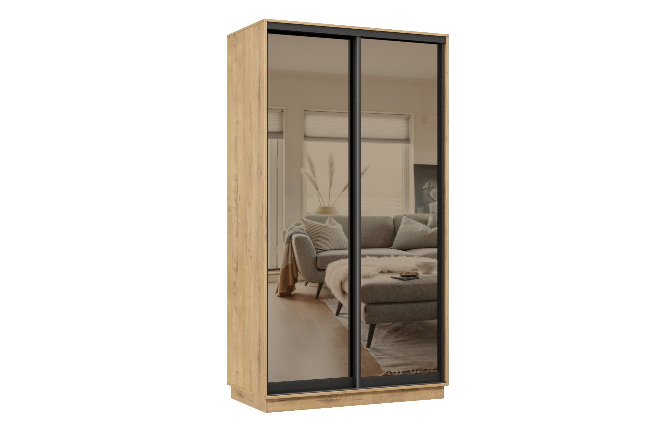 Шкаф-купе Премьер 11 (01ЗБ;01ЗБ) фасады зеркало бронза/двухдверный/Профиль чёрный муар (Бунратти)