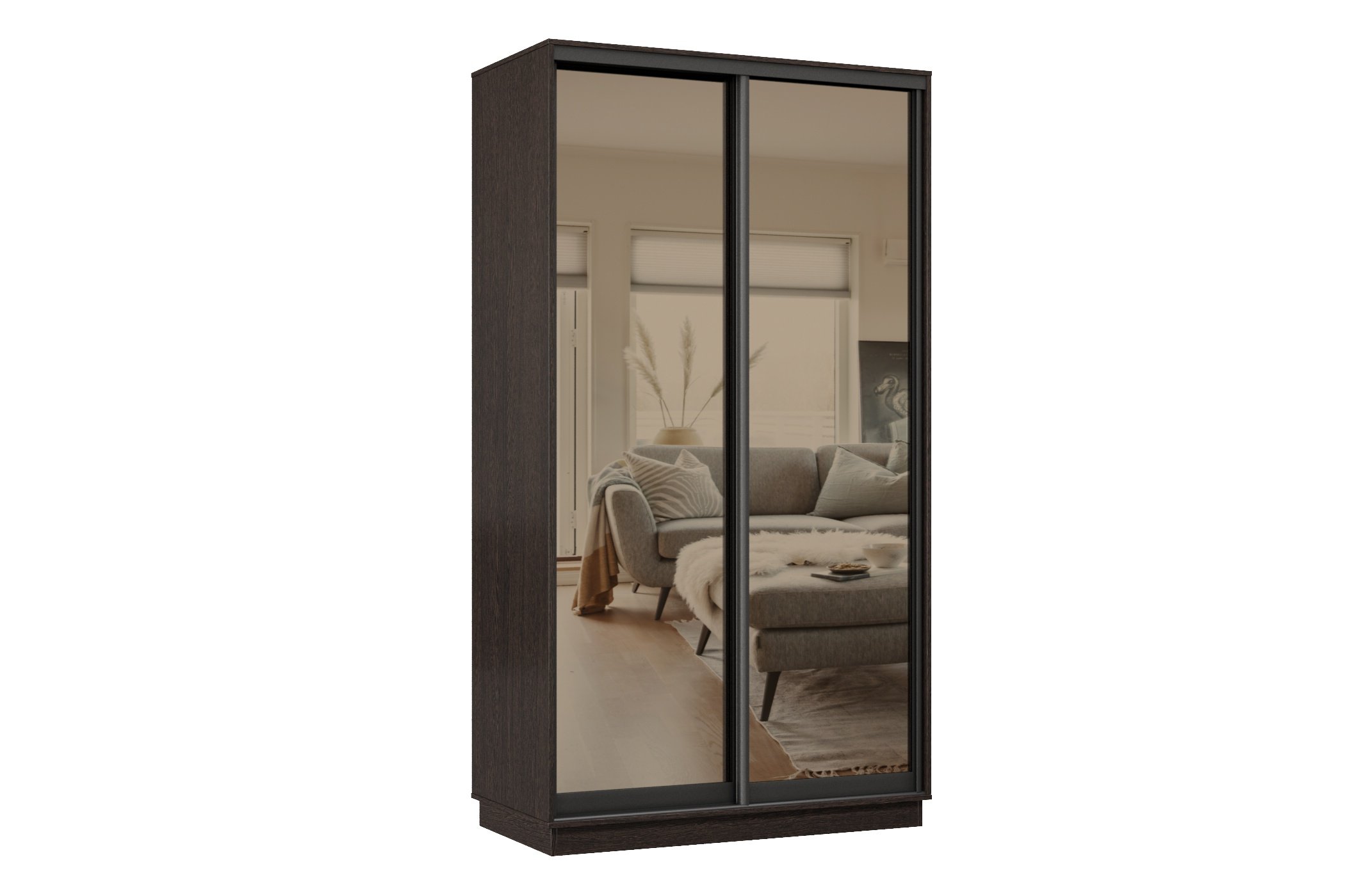 Отзывы о Столплит Шкаф-купе Премьер 12 (01ЗБ;01ЗБ) фасады зеркало бронза/двухдверный/Профиль чёрный муар Венге