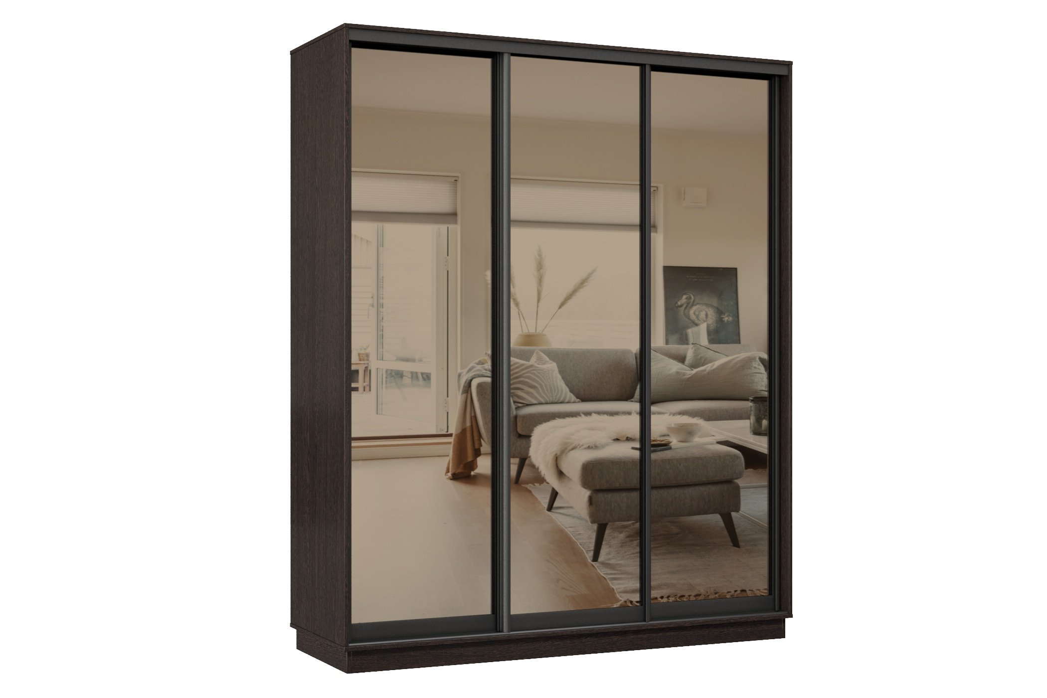 Отзывы о Столплит Шкаф-купе Премьер 24 (01ЗБ;01ЗБ;01ЗБ) фасады зеркало бронза/трёхдверный/Профиль чёрный муар Венге