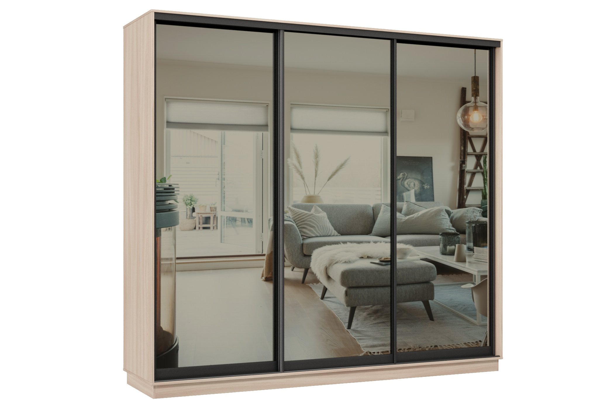 Отзывы о Столплит Шкаф-купе Премьер 33 (01ЗГ;01ЗГ;01ЗГ) фасады зеркало графит/трёхдверный/Профиль чёрный муар Ясень шимо светлый