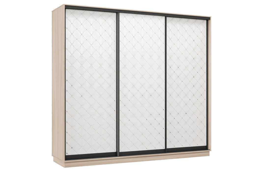 Шкаф-купе Премьер 57 (01РБ;01РБ;01РБ) фасады ромб белый/трёхдверный/Профиль чёрный муар (Ясень шимо светлый)
