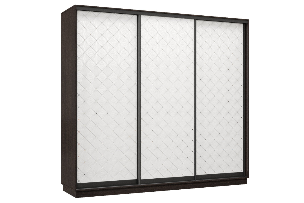 Шкаф-купе Премьер 58 (01РБ;01РБ;01РБ) фасады ромб белый/трёхдверный/Профиль чёрный муар (Венге)