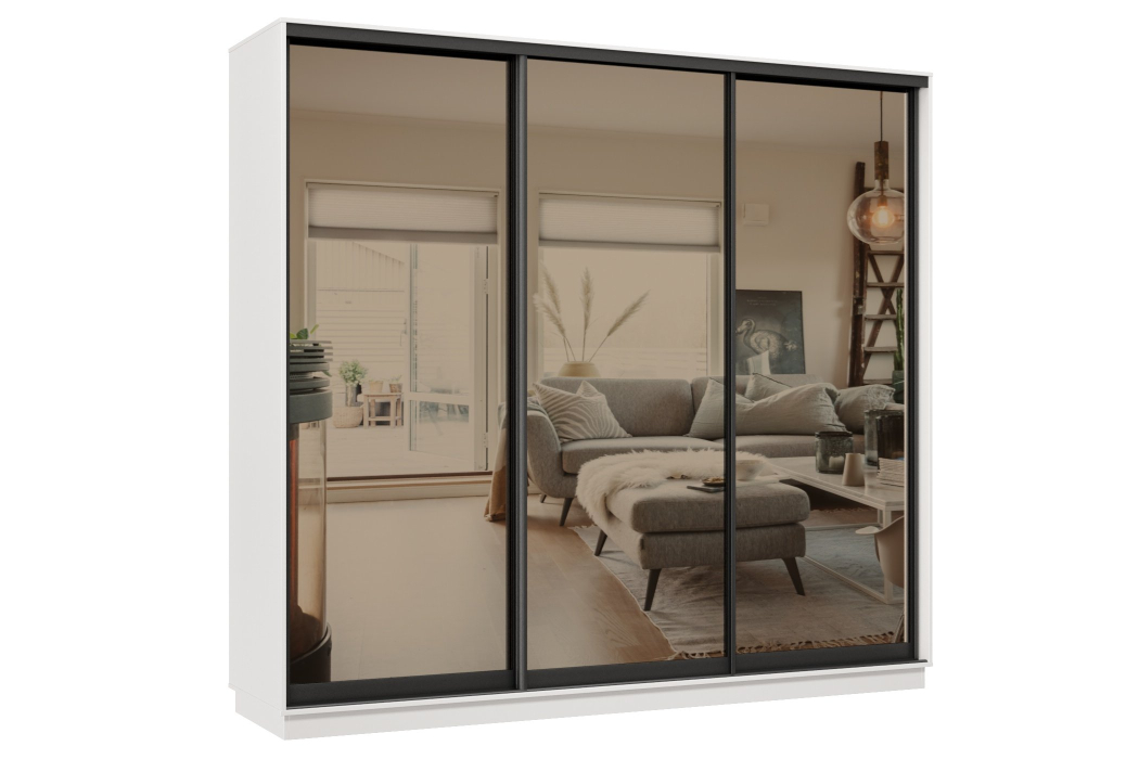 Отзывы о Столплит Шкаф-купе Премьер 59 (01ЗБ;01ЗБ;01ЗБ) фасады зеркало бронза/трёхдверный/Профиль чёрный муар Белый