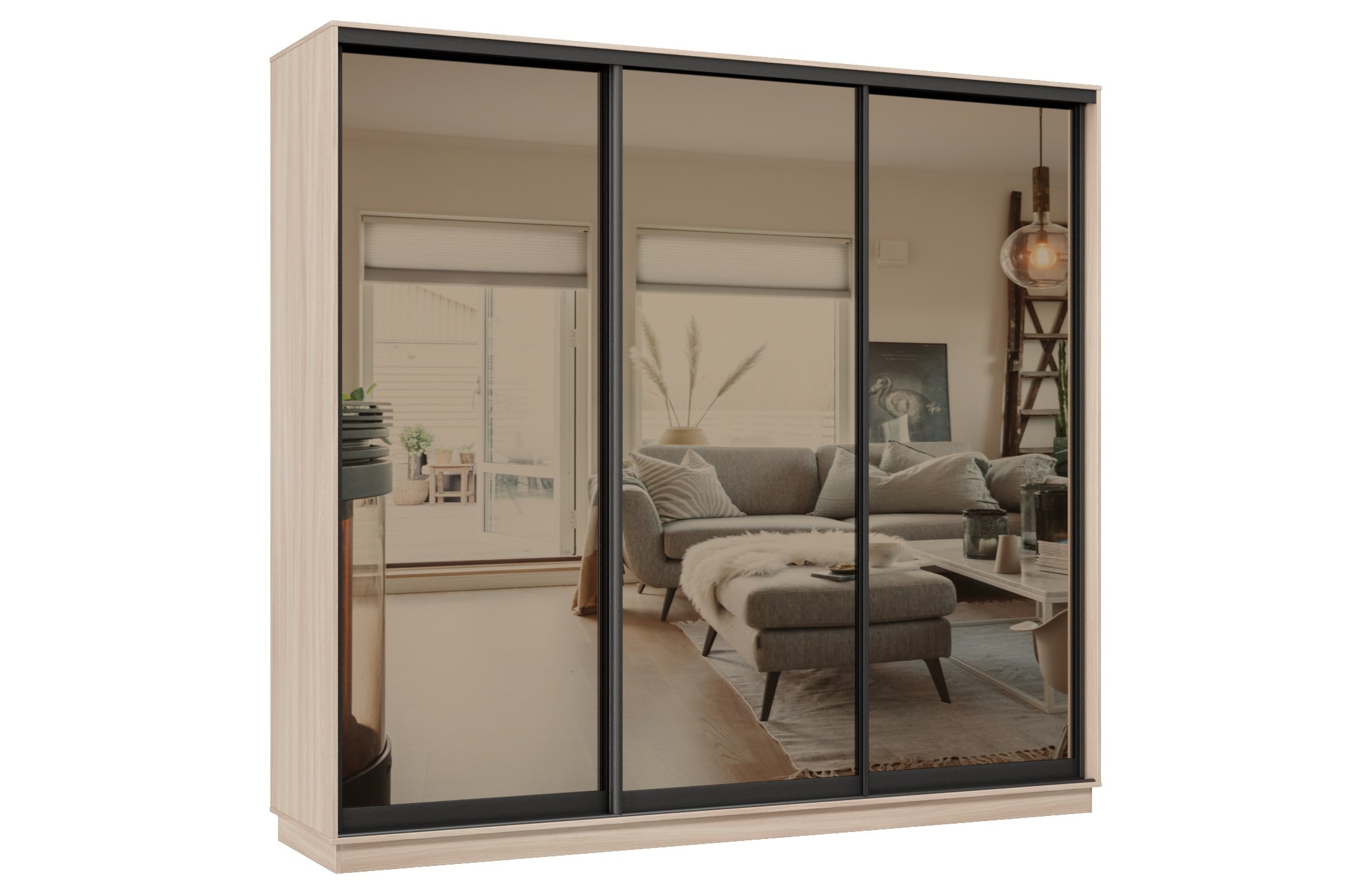 Отзывы о Столплит Шкаф-купе Премьер 60 (01ЗБ;01ЗБ;01ЗБ) фасады зеркало бронза/трёхдверный/Профиль чёрный муар Ясень шимо светлый