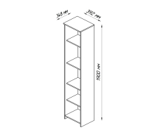 Стеллаж СИРИУС узкий с пятью полками, 392х348х1900. Изготовлен из кашированного ДСП толщиной 16 мм. Крепится к стене. Гарантийный срок для жилых помещений 24 месяца, для общественных помещений - 18 месяцев.
